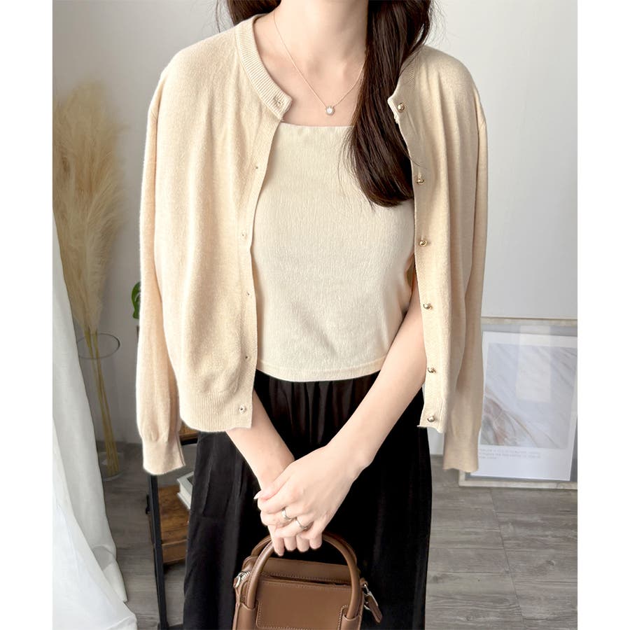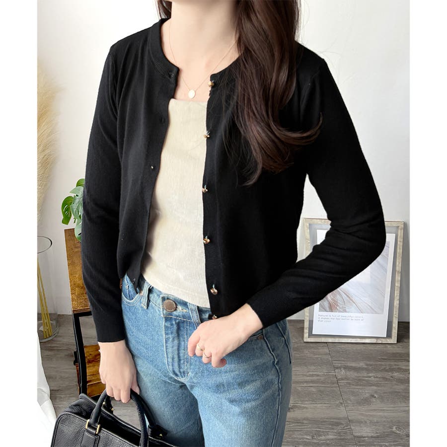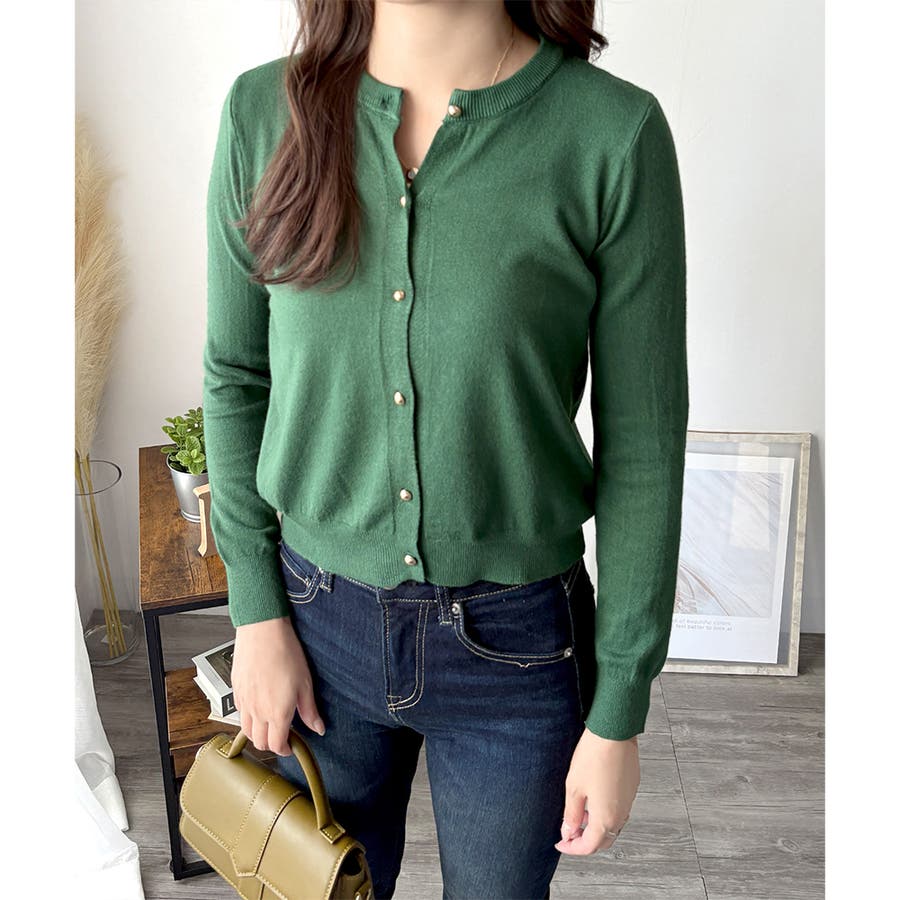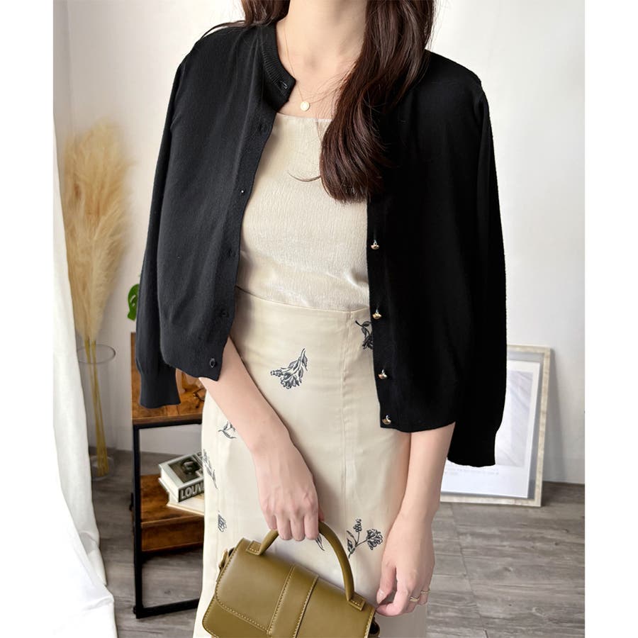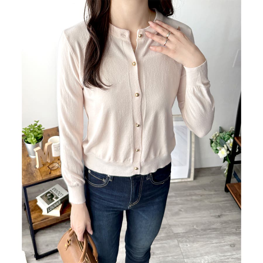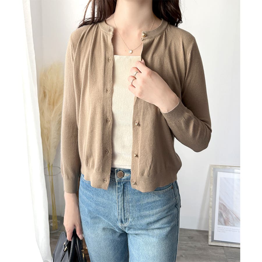 小ぶりなボタンがほどよいアクセントになり、上品さを引き立てます。
