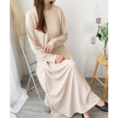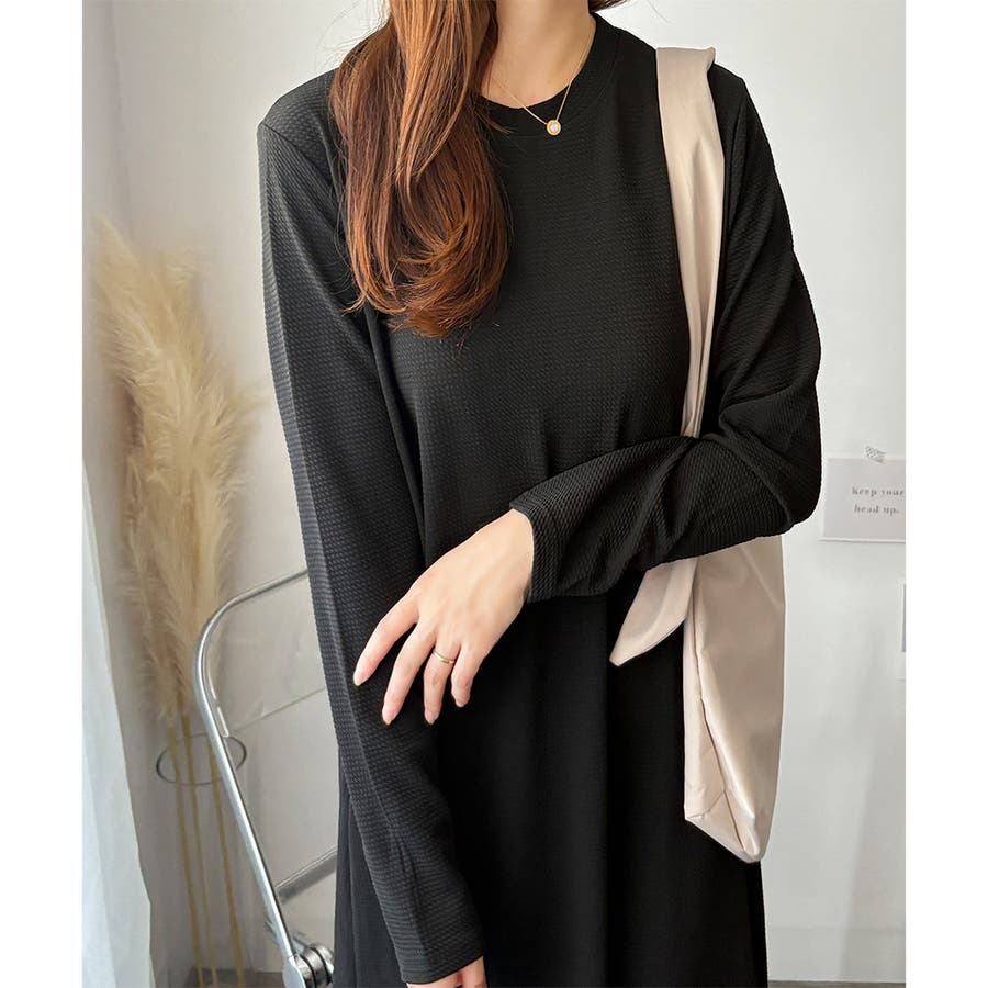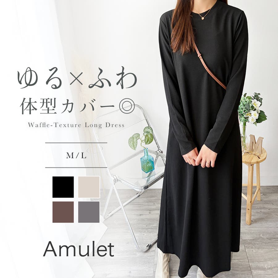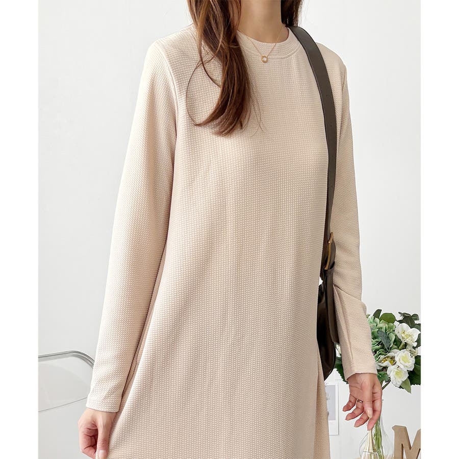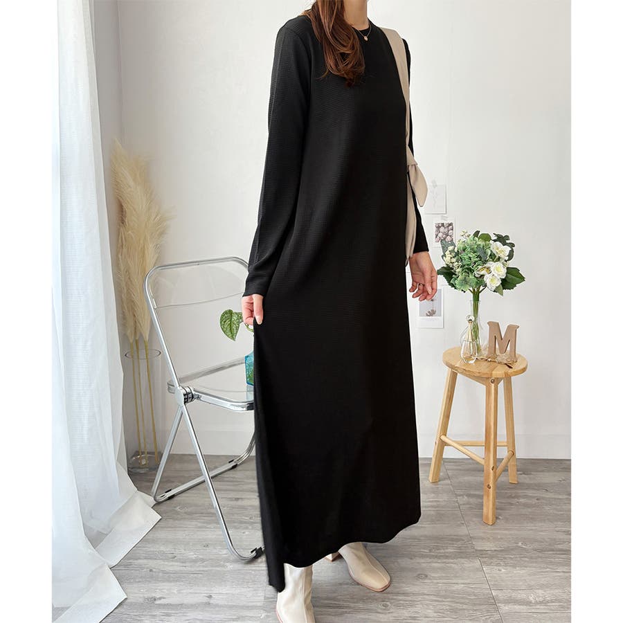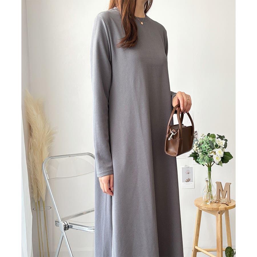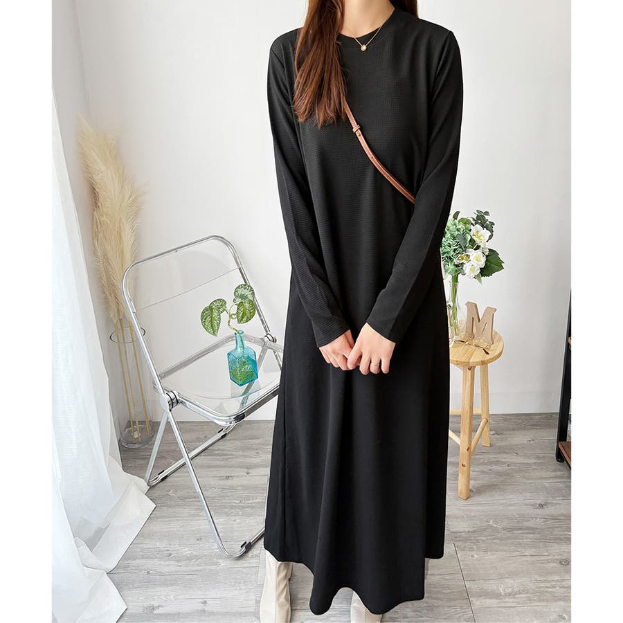 ワッフル風ロングワンピース レディース 長袖