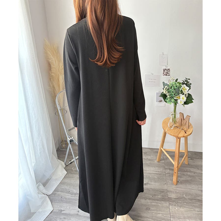 ロング丈が縦のラインを強調し、スタイルアップ効果も期待できます◎