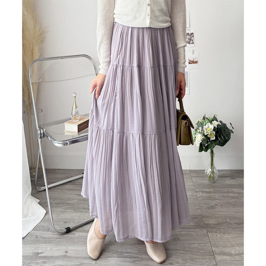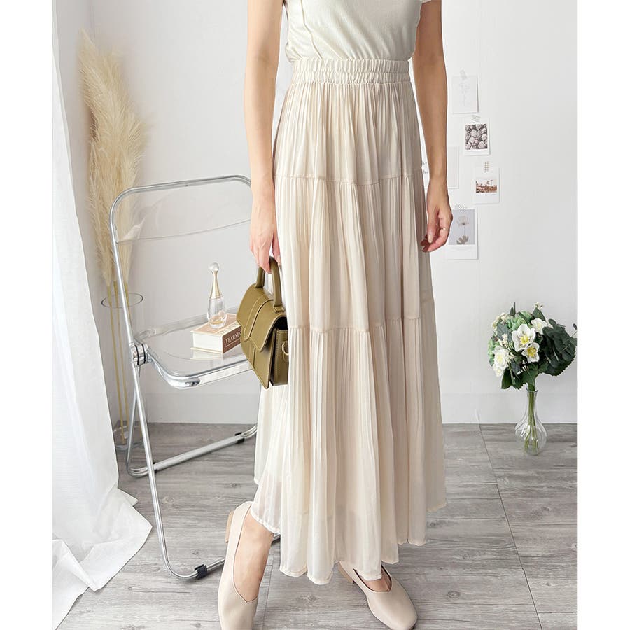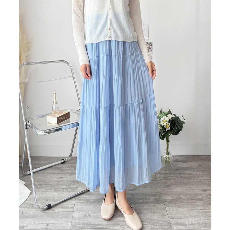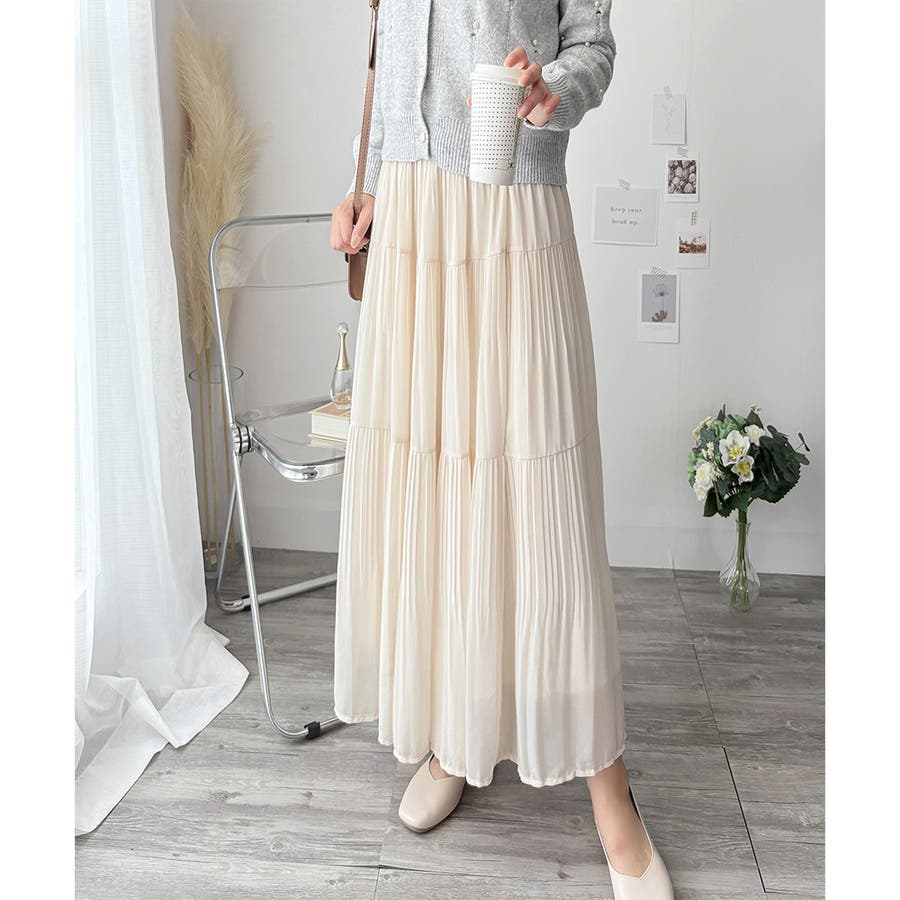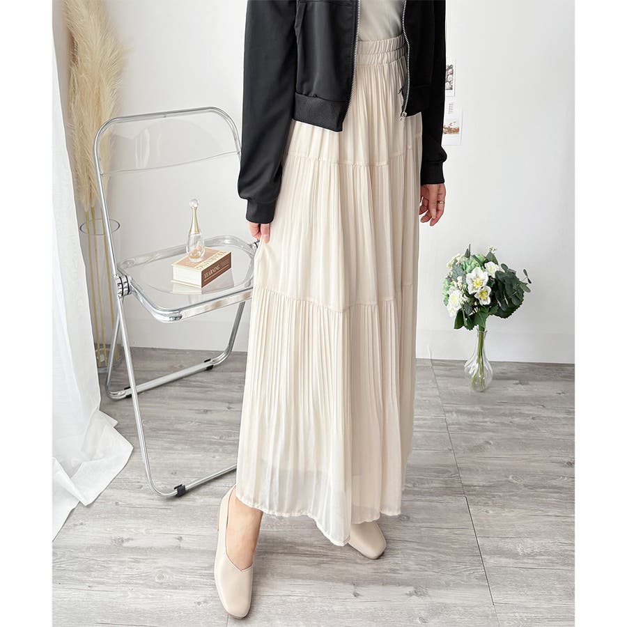シフォン風の素材に繊細なプリーツを施したスカートは、歩くたびに揺れて上品な印象♪。