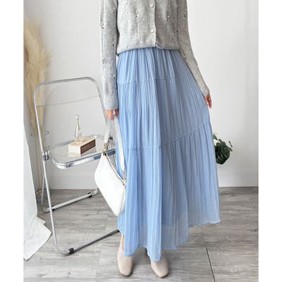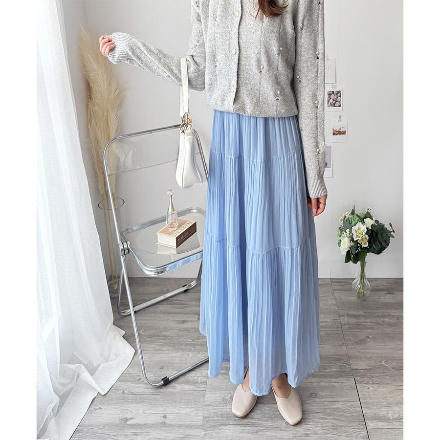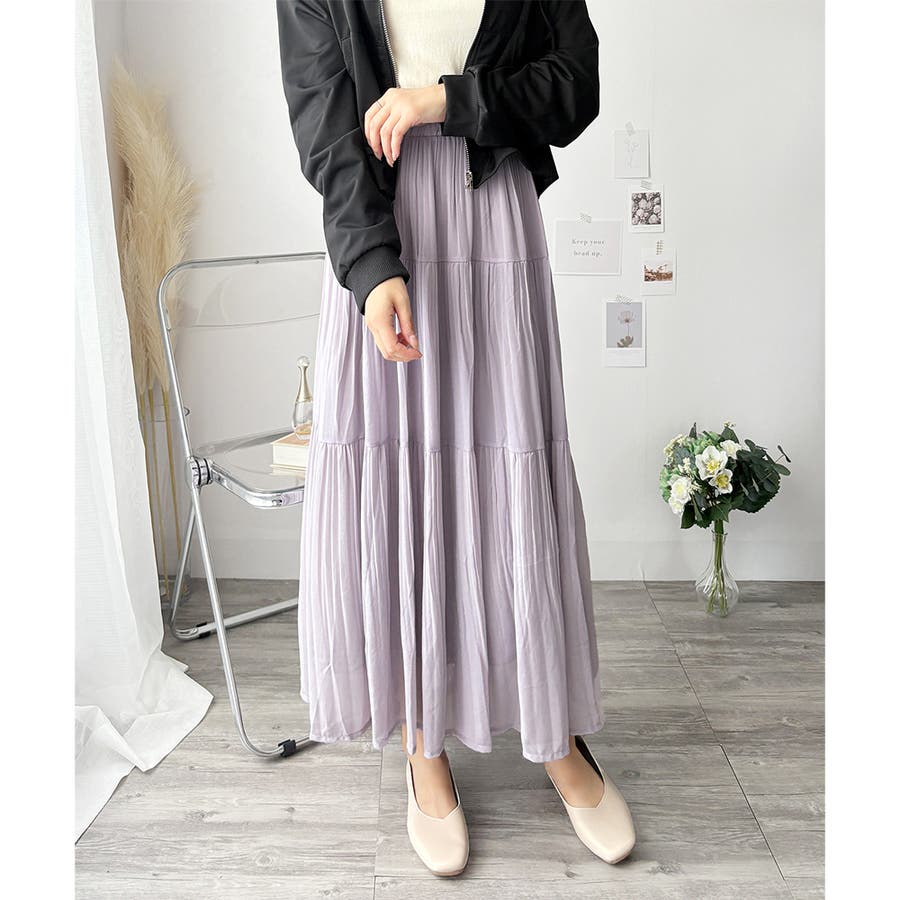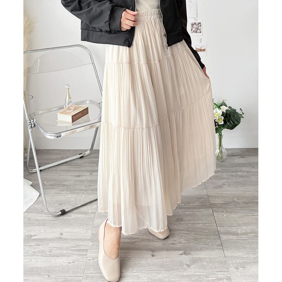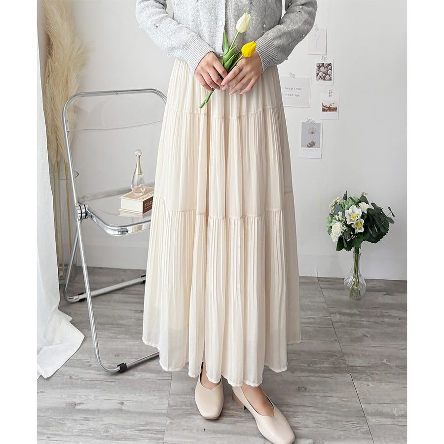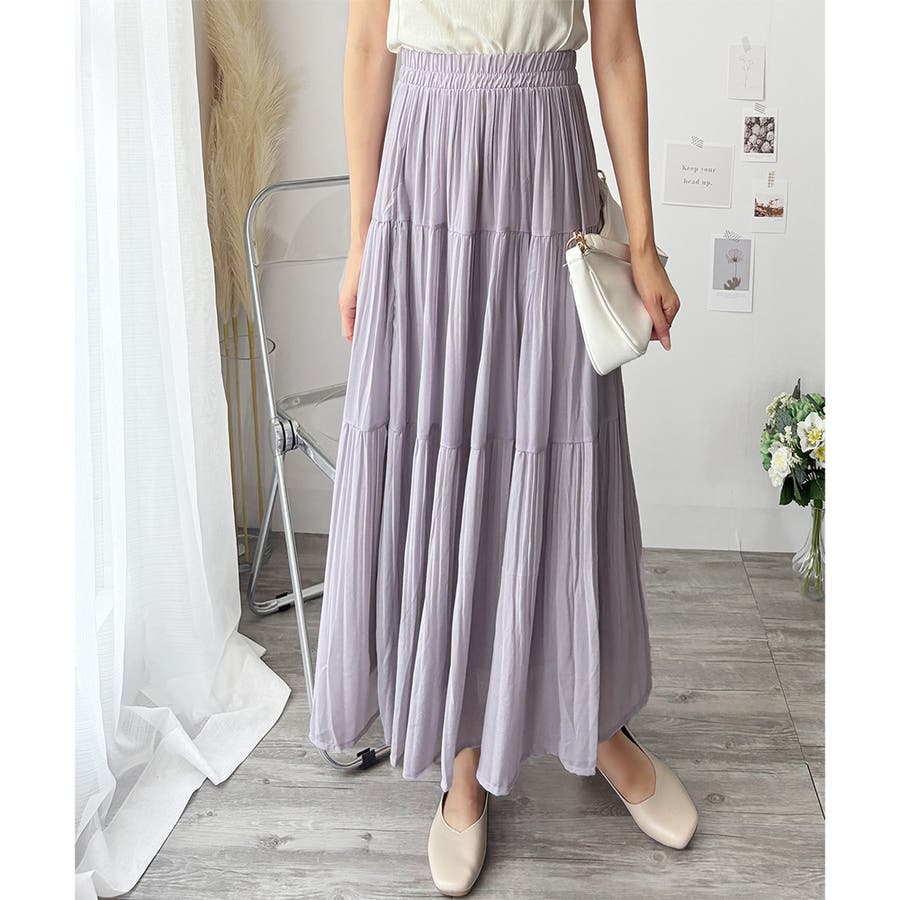 シフォン風の素材に繊細なプリーツを施したスカートは、歩くたびに揺れて上品な印象♪。