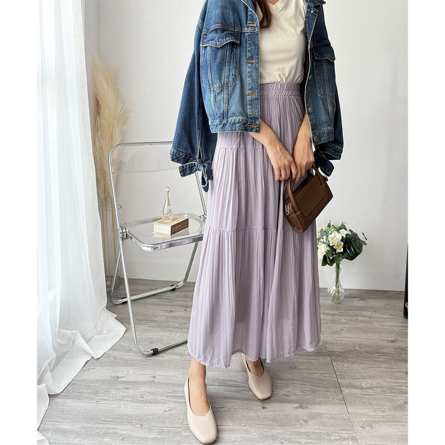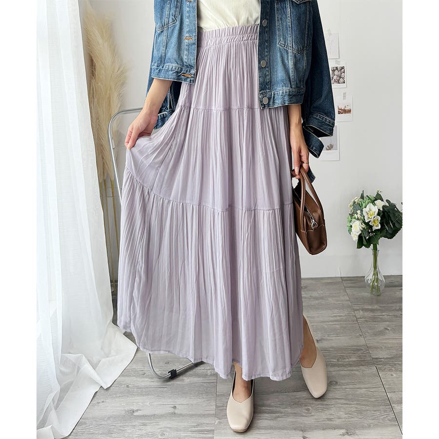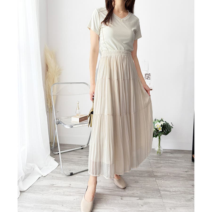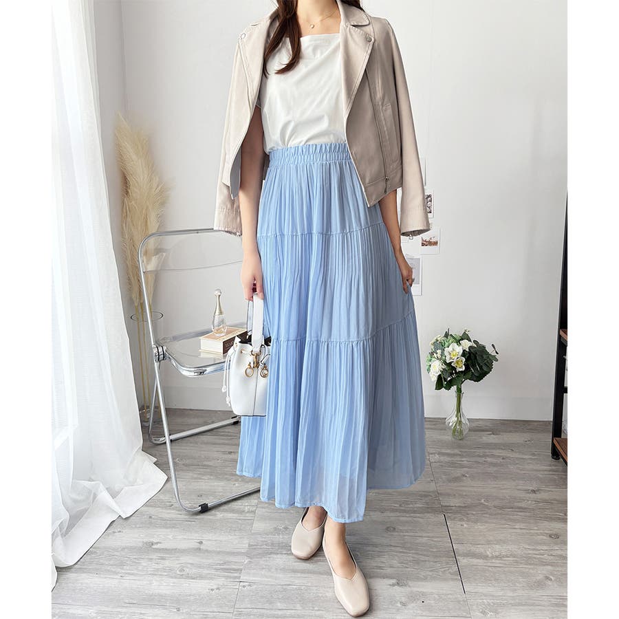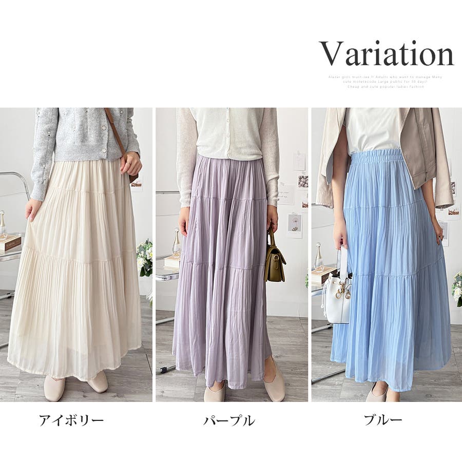 シフォン風の素材に繊細なプリーツを施したスカートは、歩くたびに揺れて上品な印象♪。