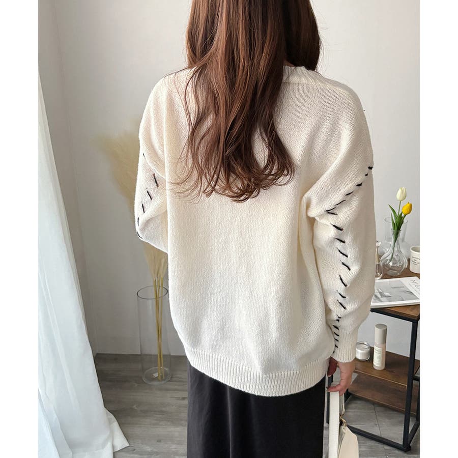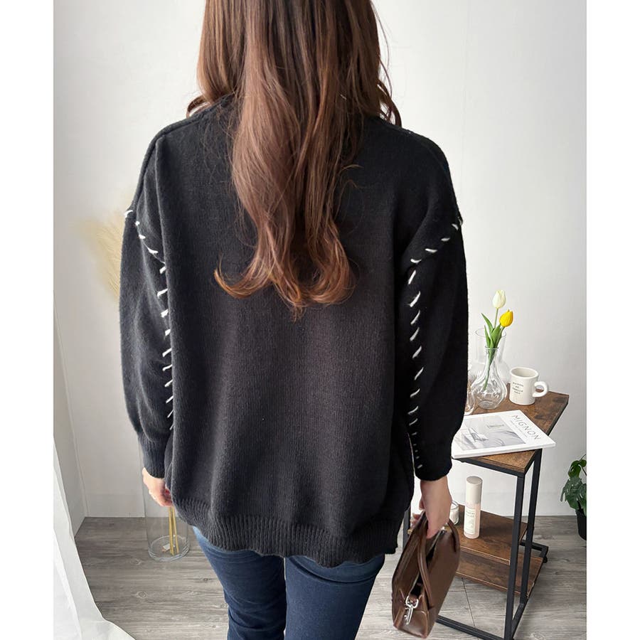 ざっくり感のある編み地が、カジュアルながらも上品な雰囲気を演出します。