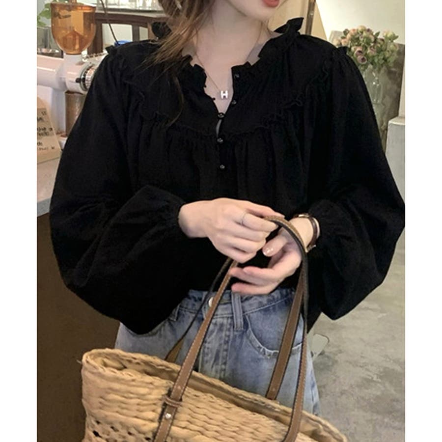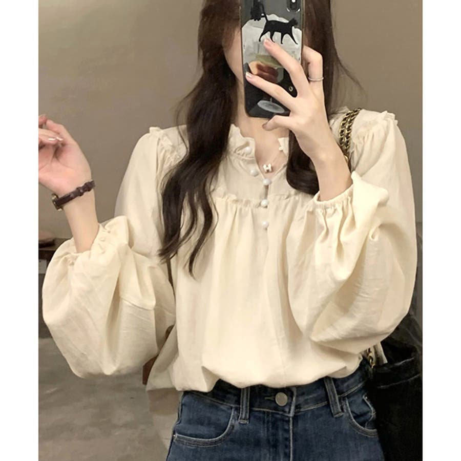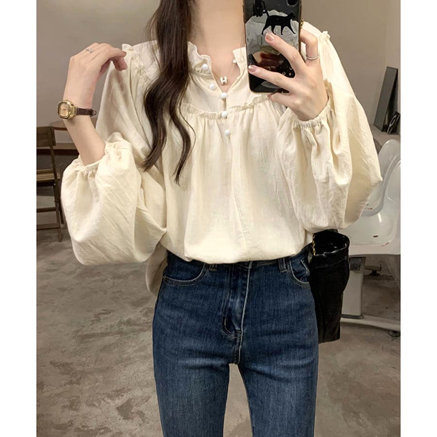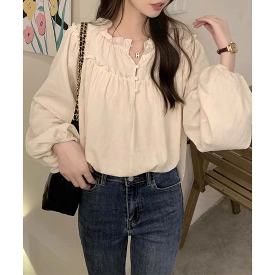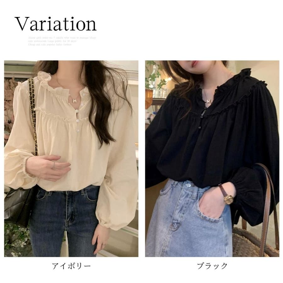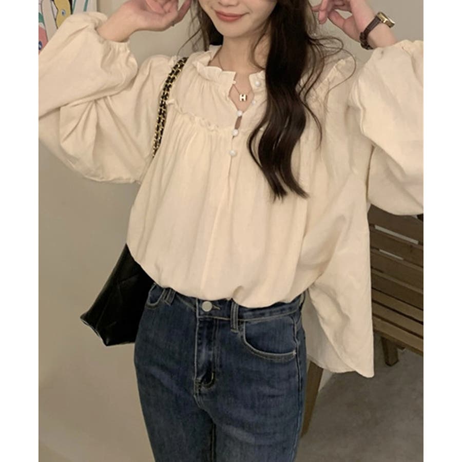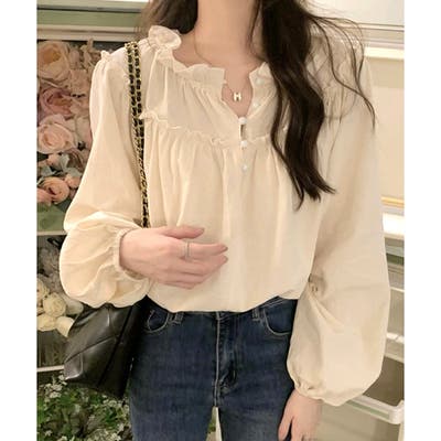 フリルネックボリュームスリーブブラウス レディース 長袖