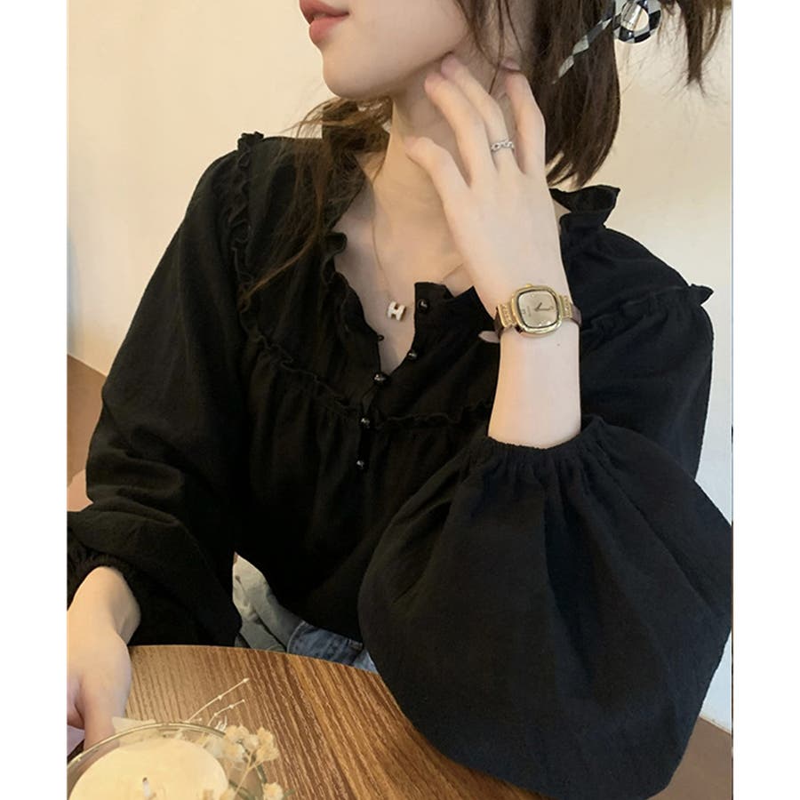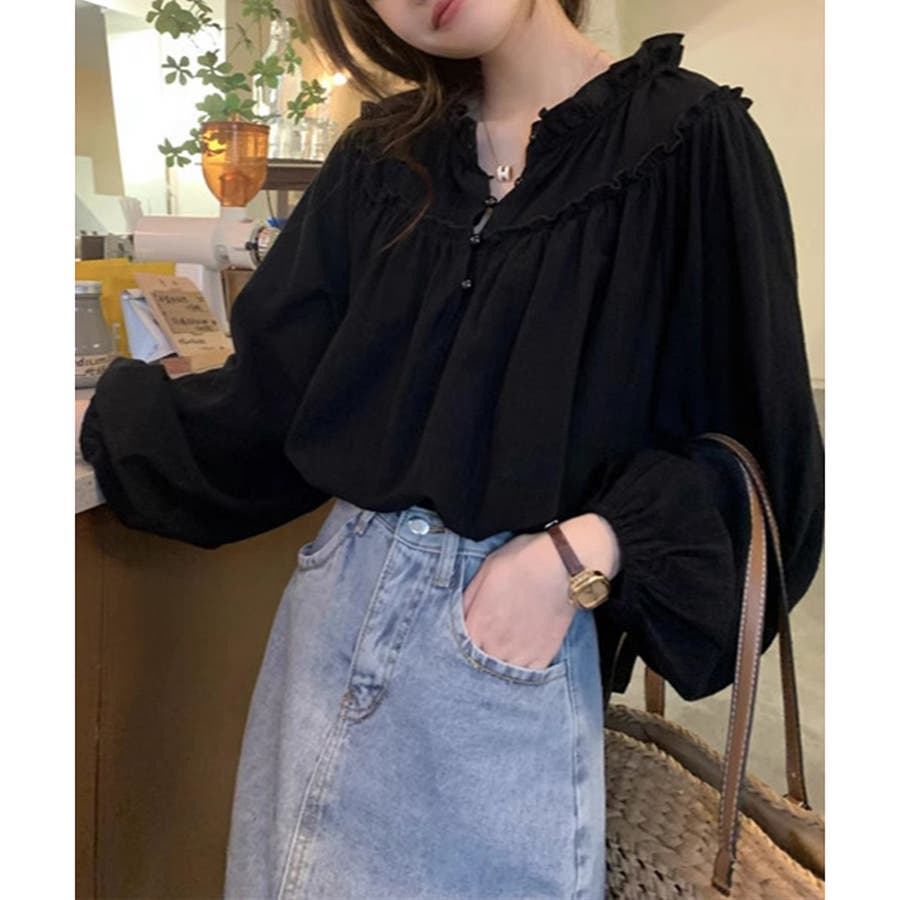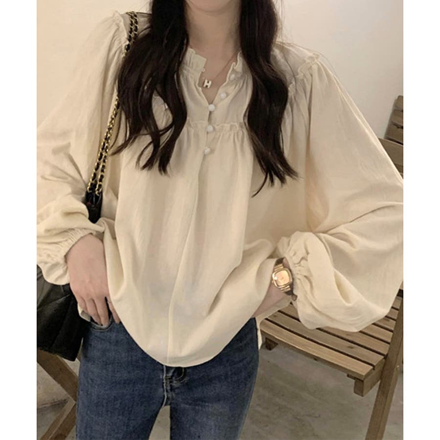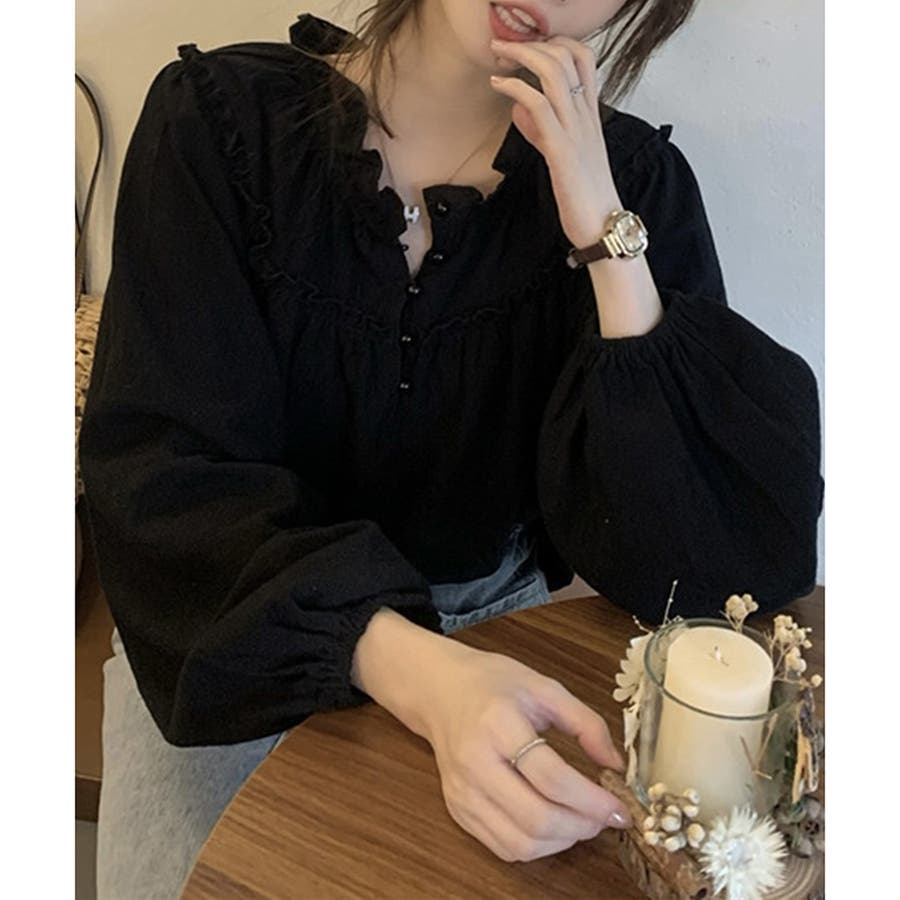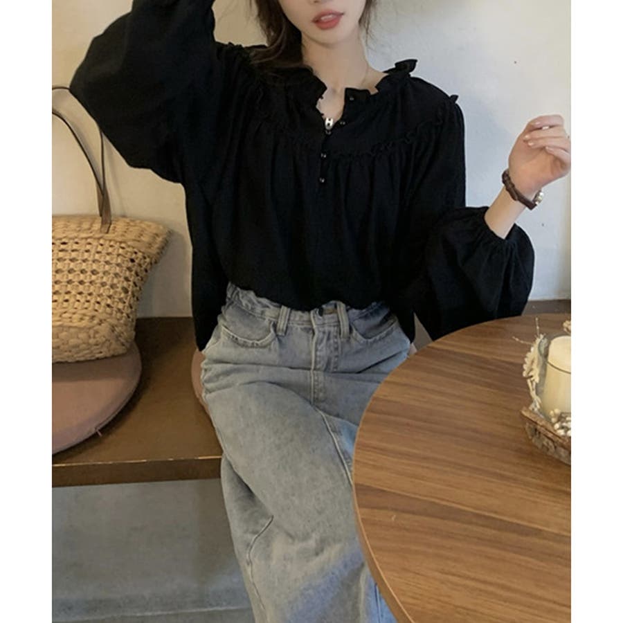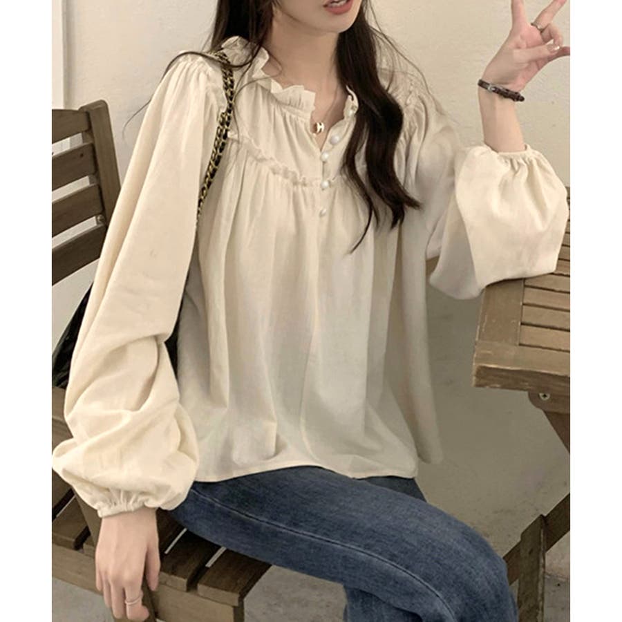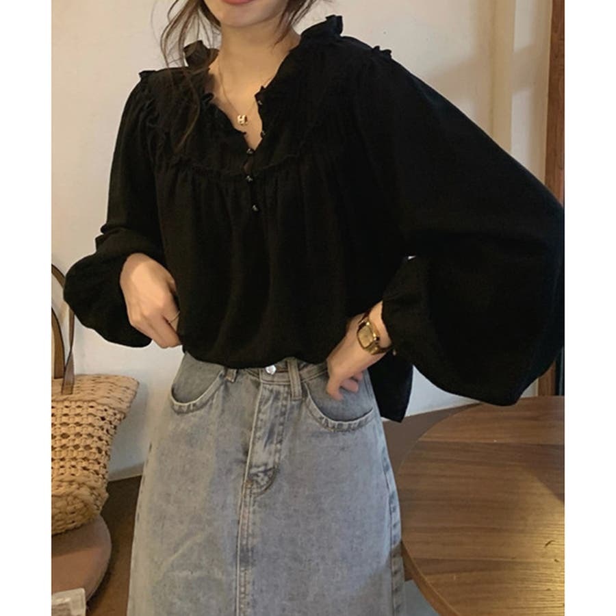 フリルネックボリュームスリーブブラウス レディース 長袖