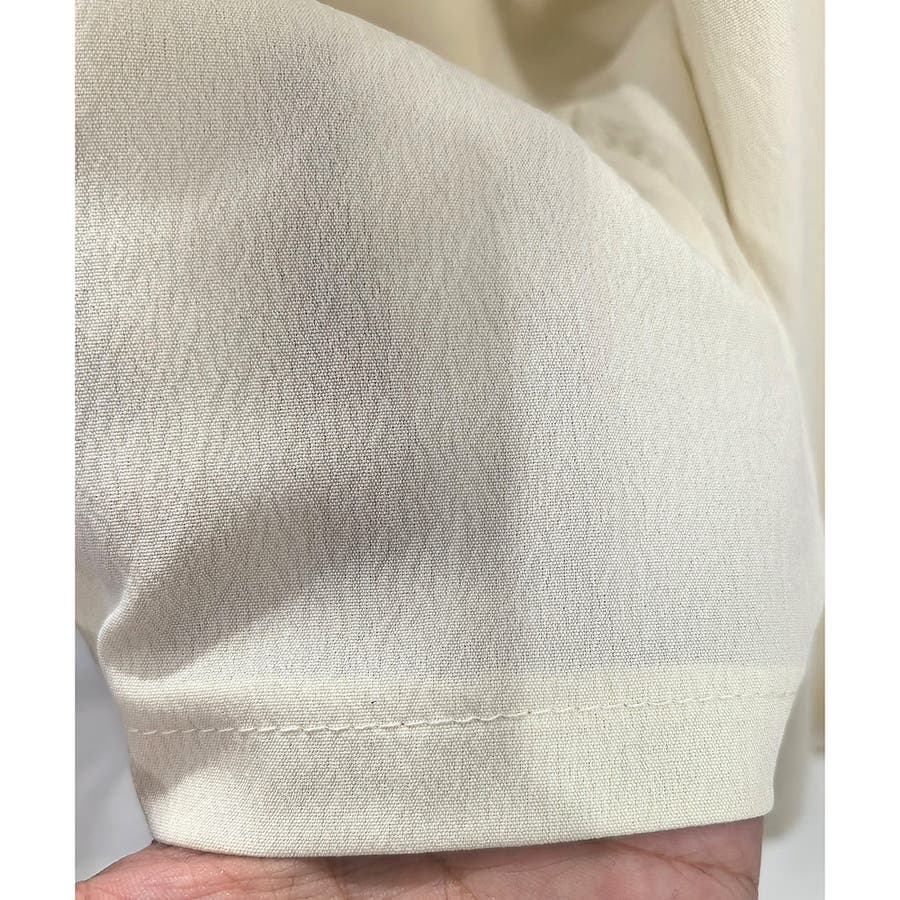控えめなギャザーとボリュームスリーブが、立体的でふんわりとしたシルエットに。