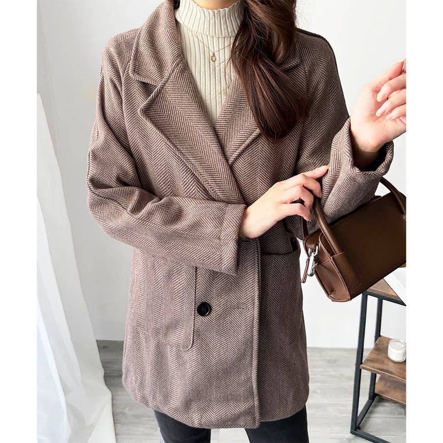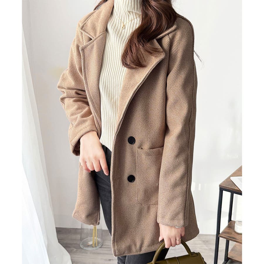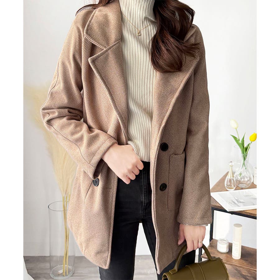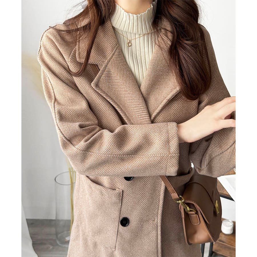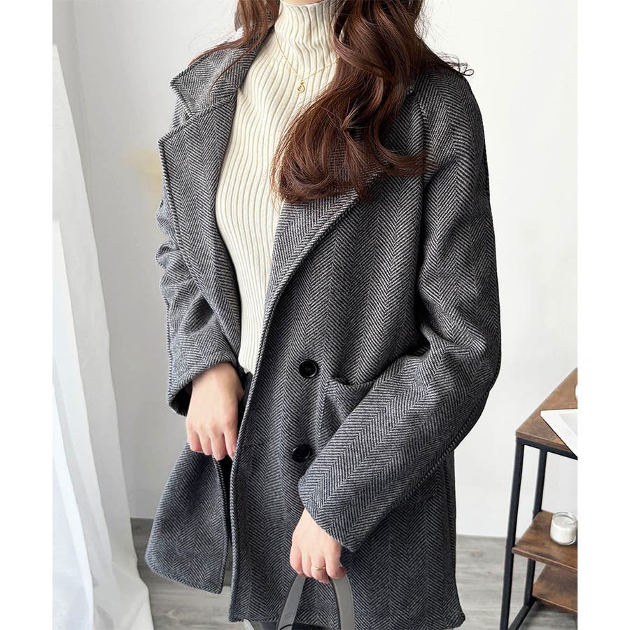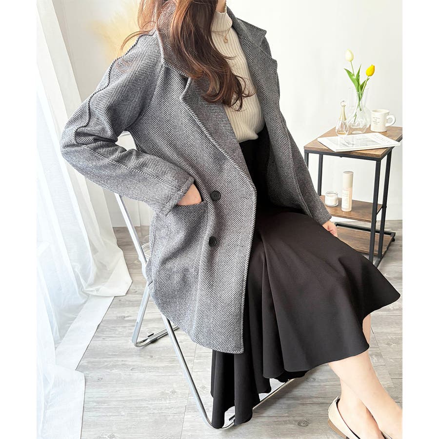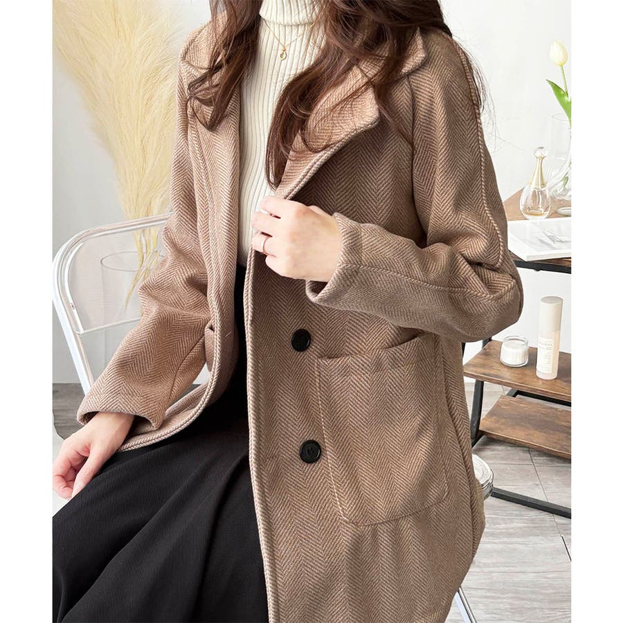 ミドル丈ヘリンボーン柄チェスターコート レディース 秋冬