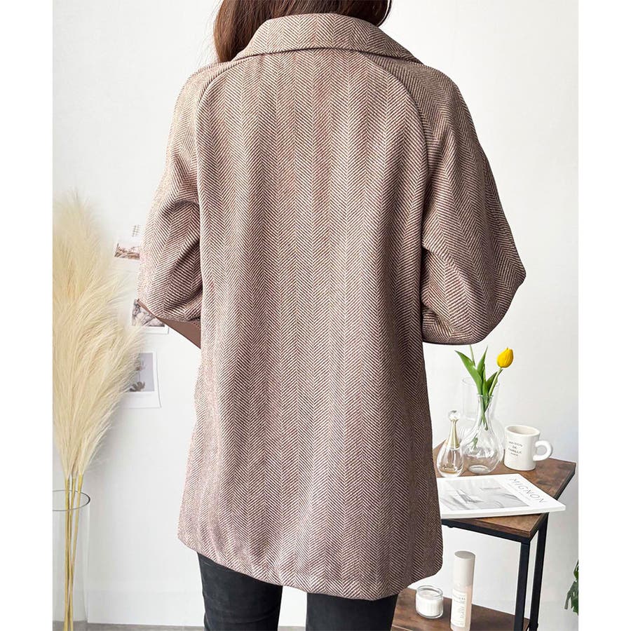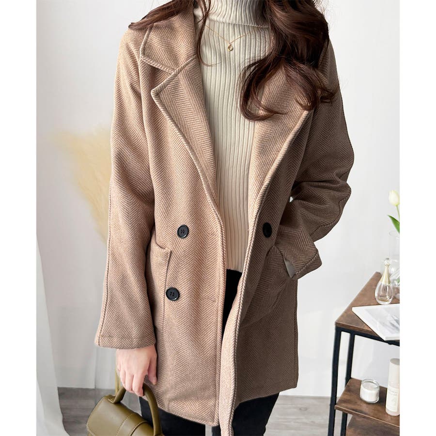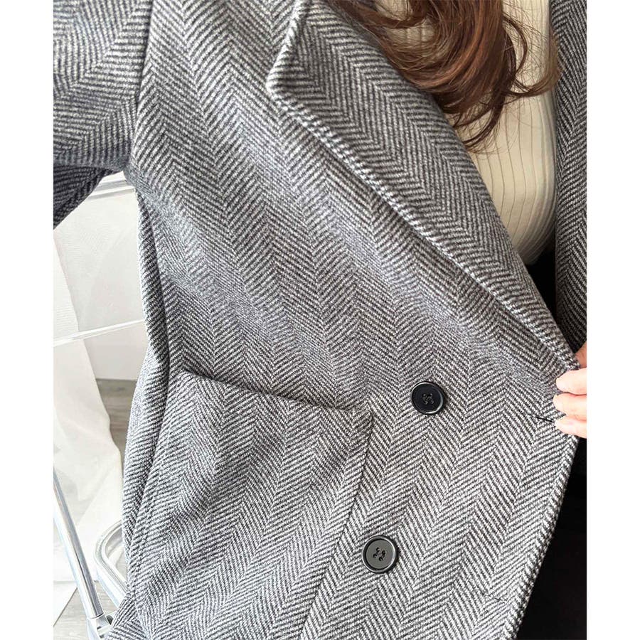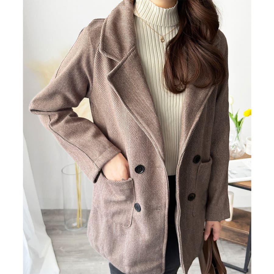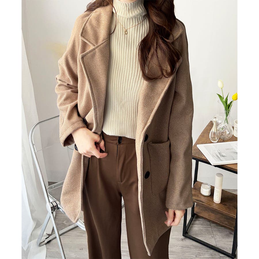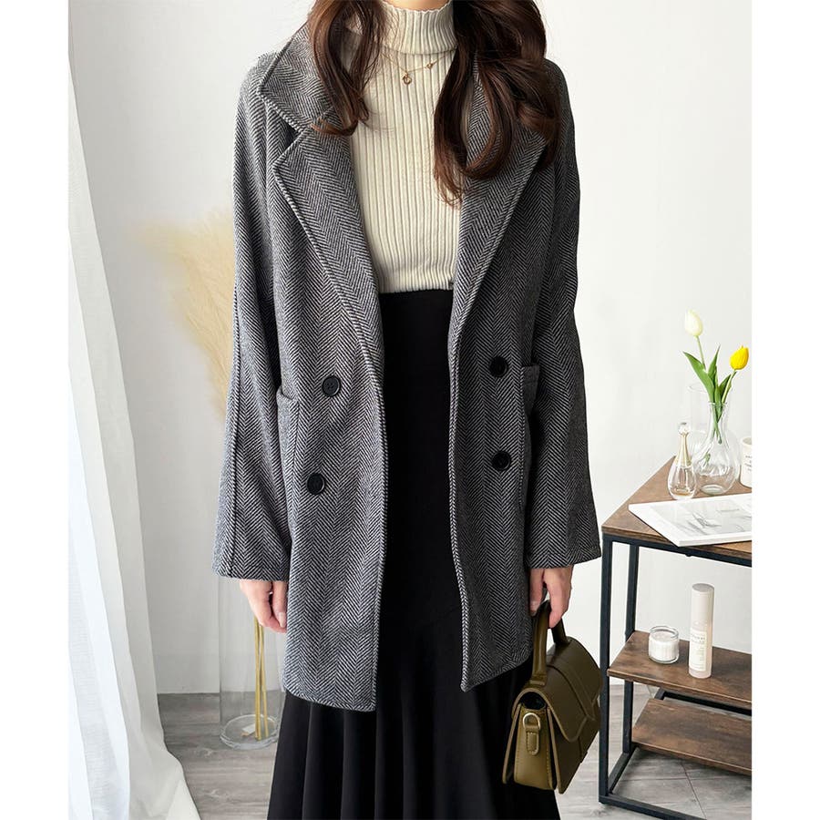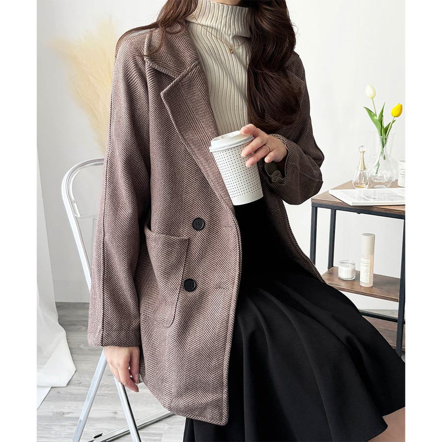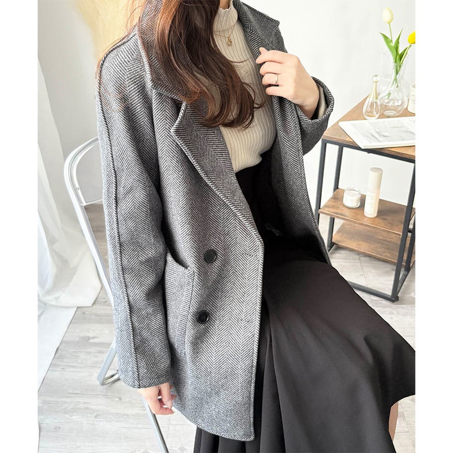 ミドル丈ヘリンボーン柄チェスターコート レディース 秋冬