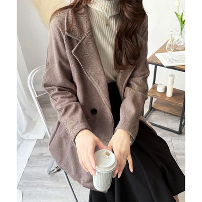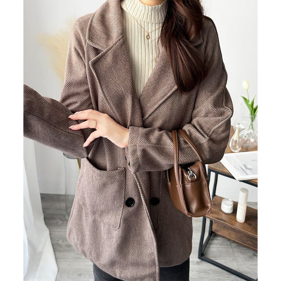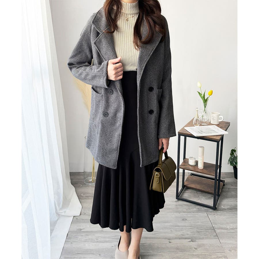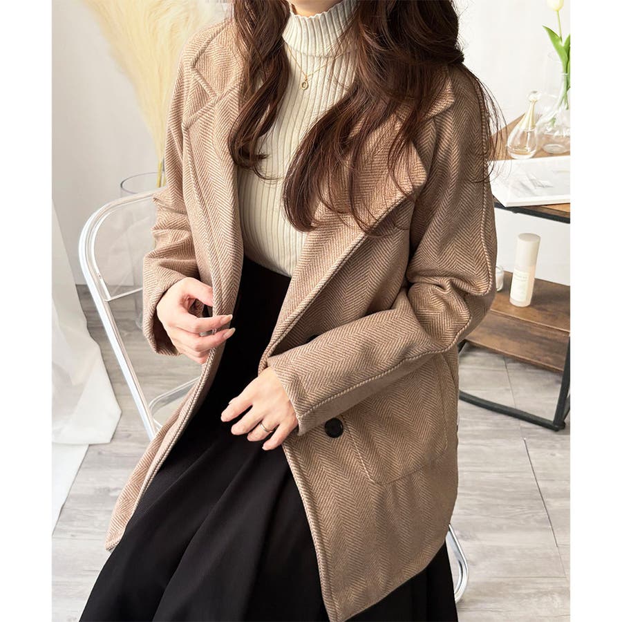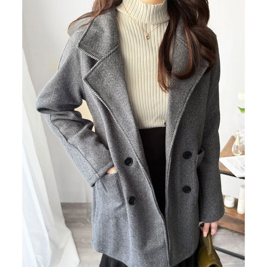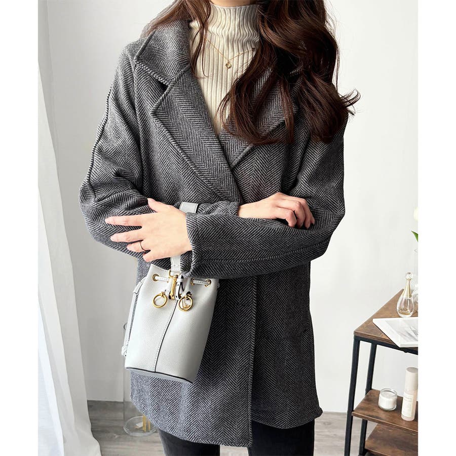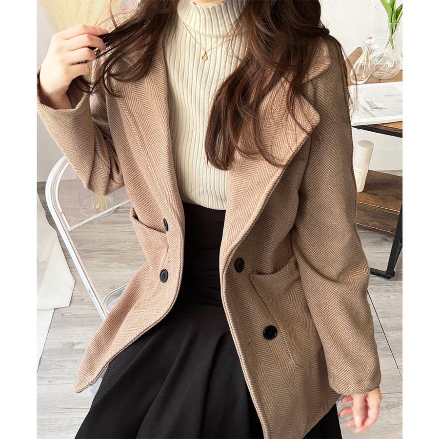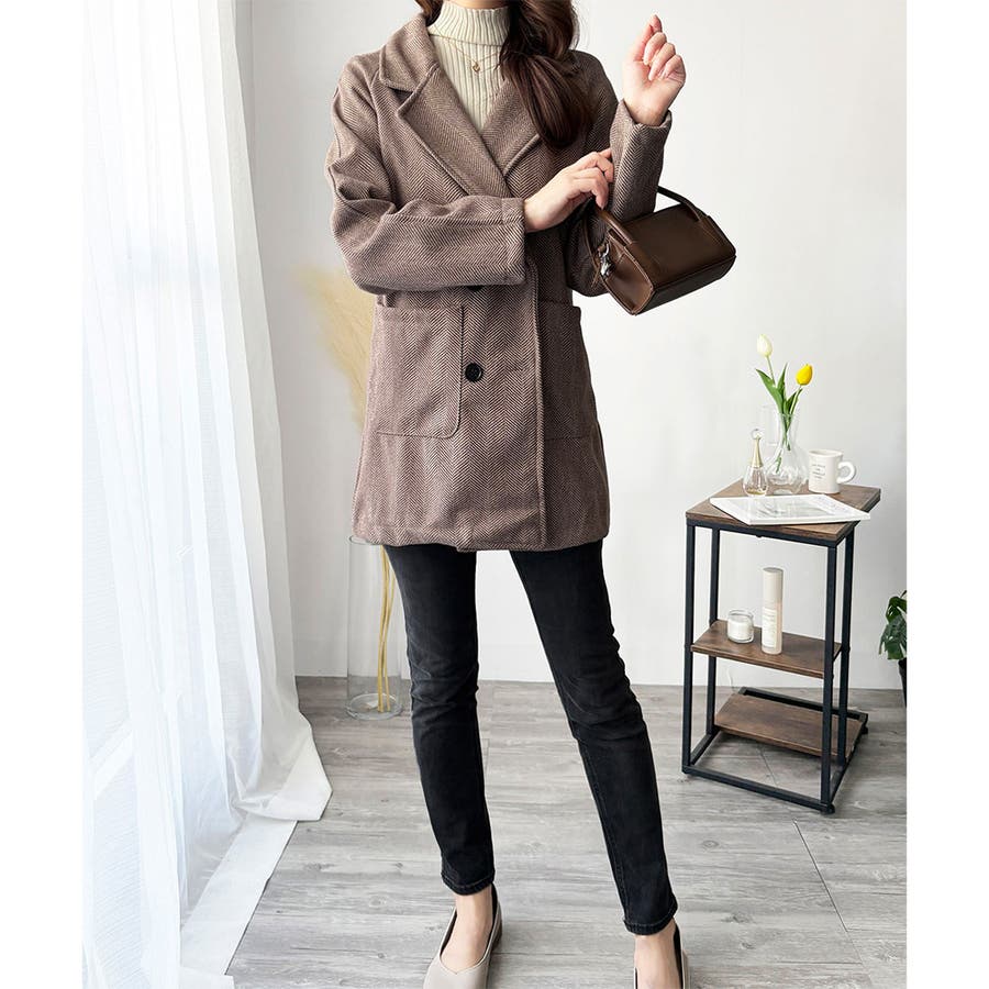 ミドル丈ヘリンボーン柄チェスターコート レディース 秋冬