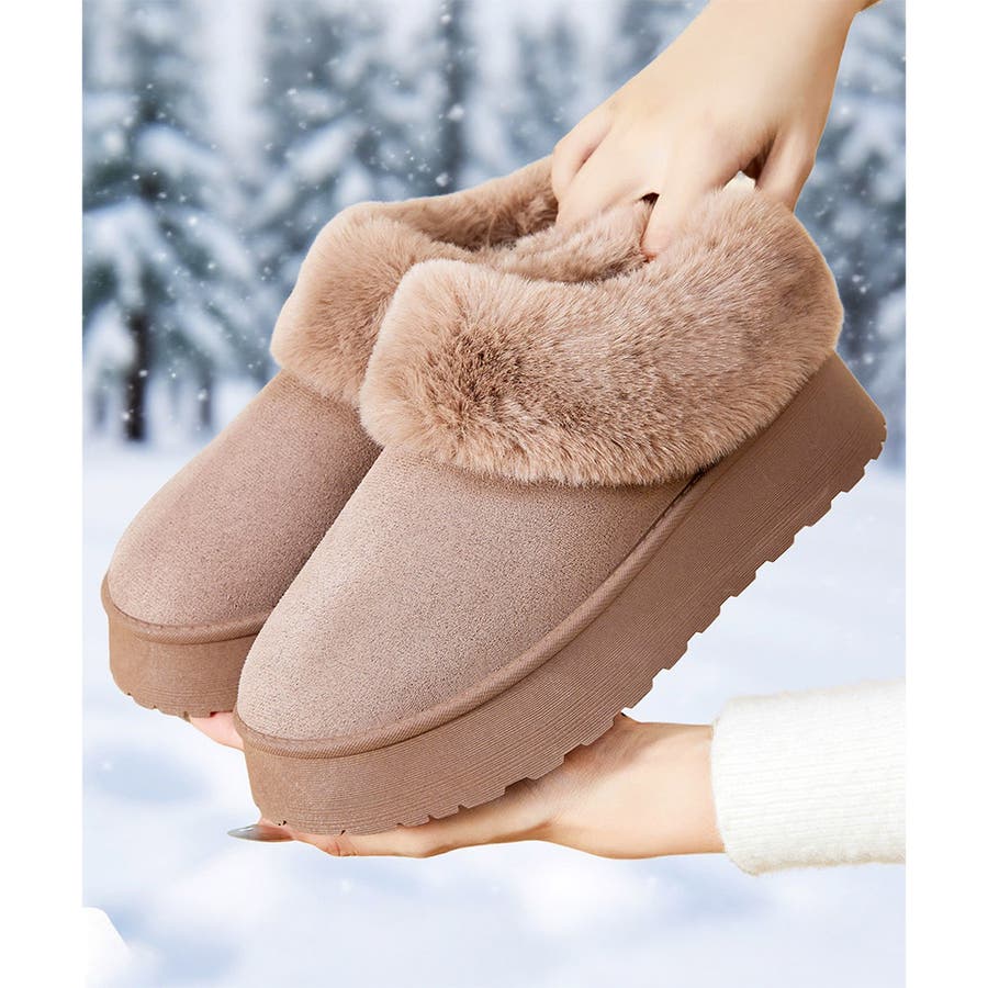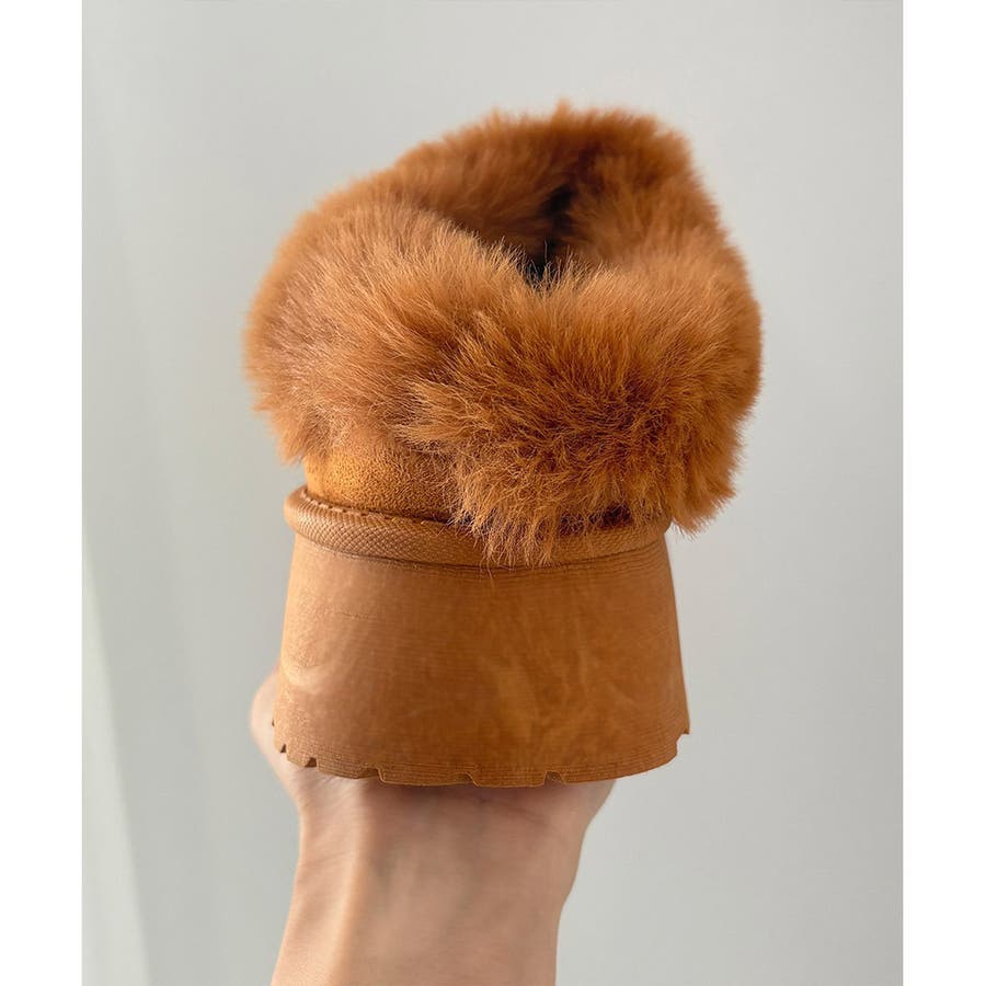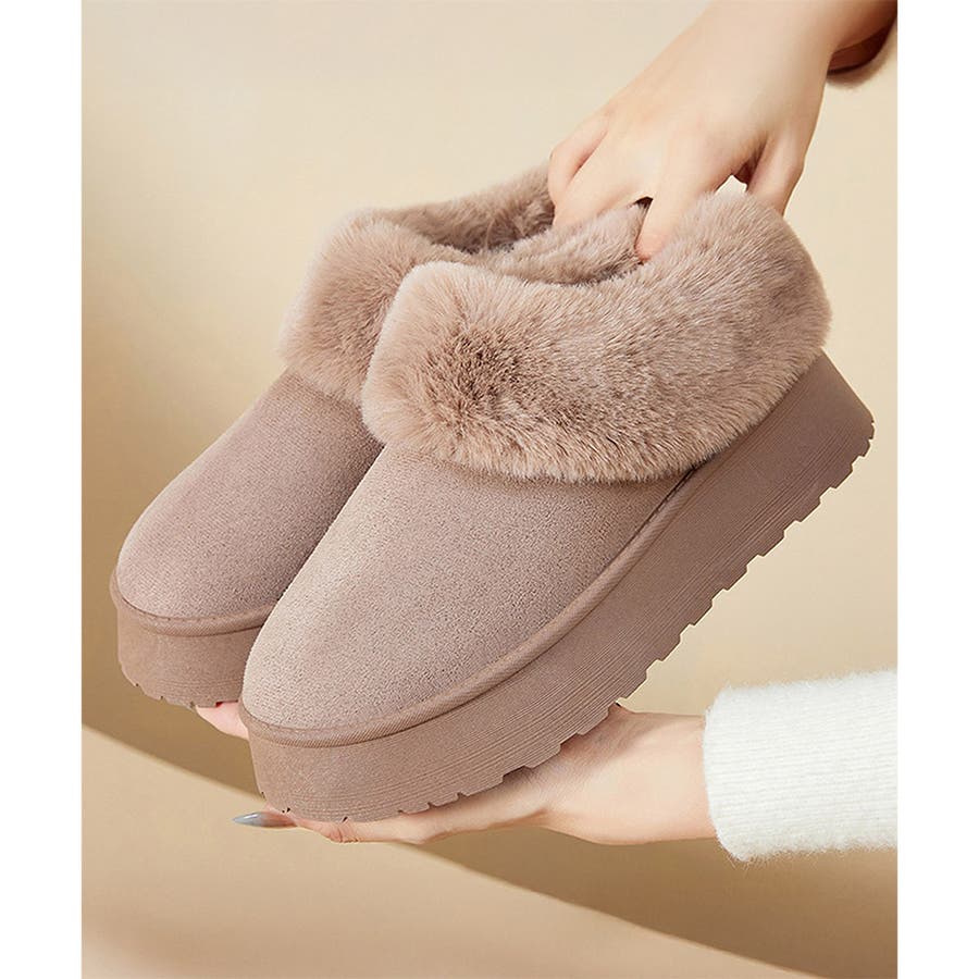 内側はふかふかのファー素材で、足元をやさしく包み込みます。