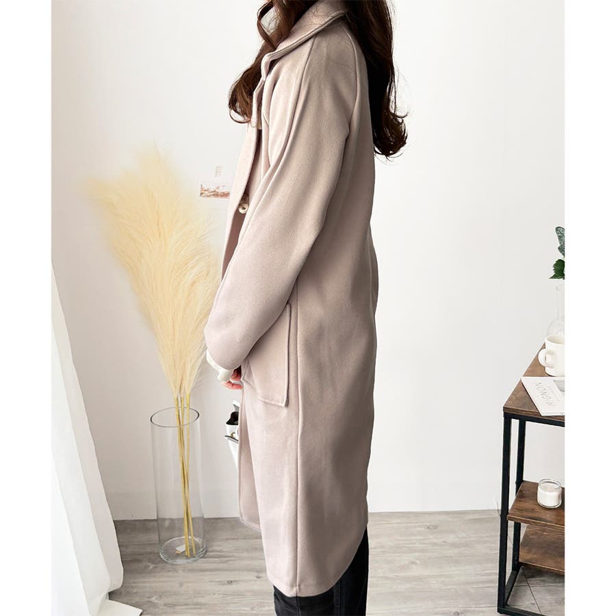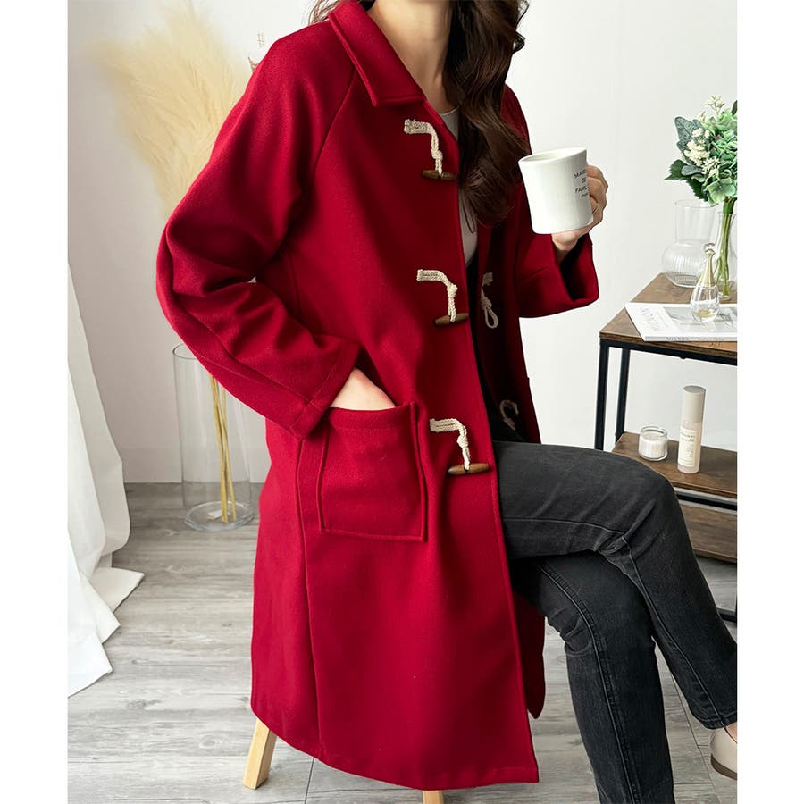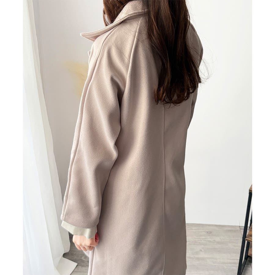 温かみのあるボタンがアクセントになった、クラシカルな印象のロングコート。