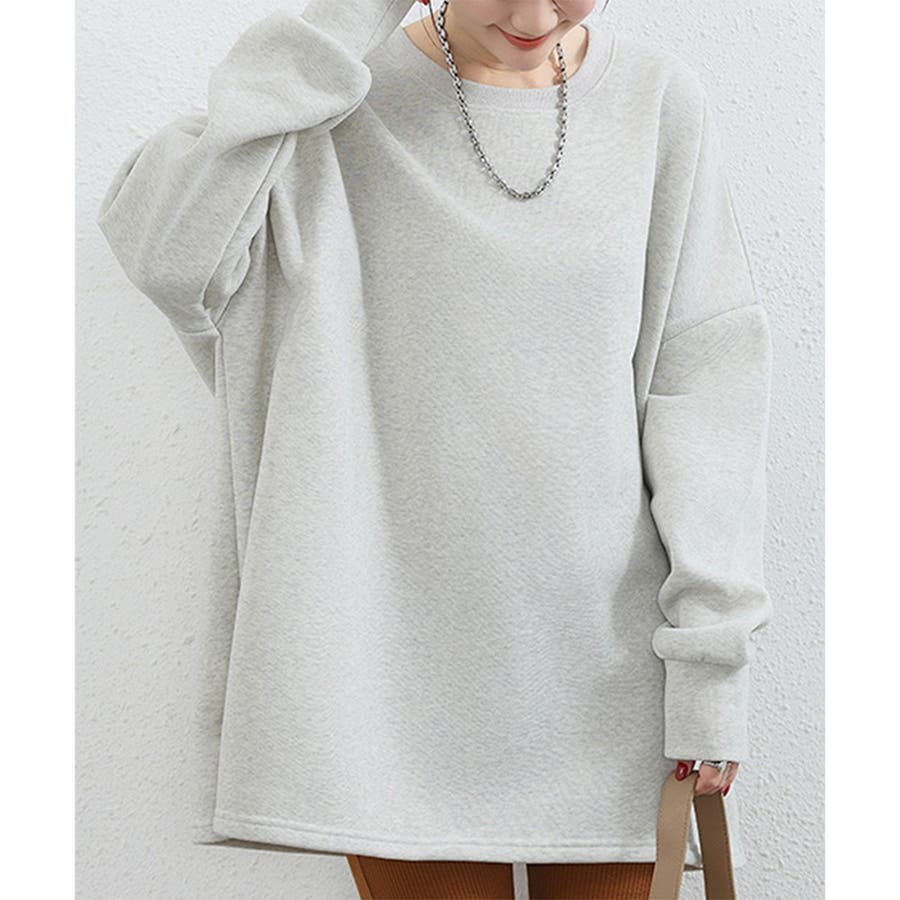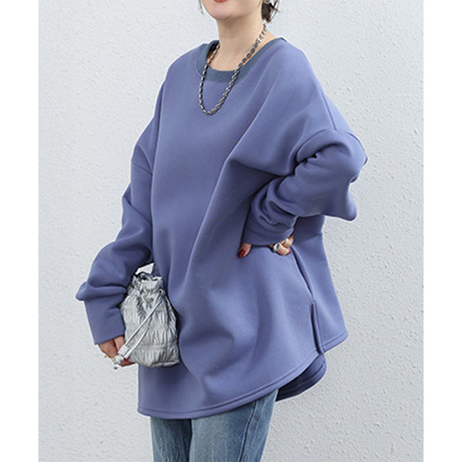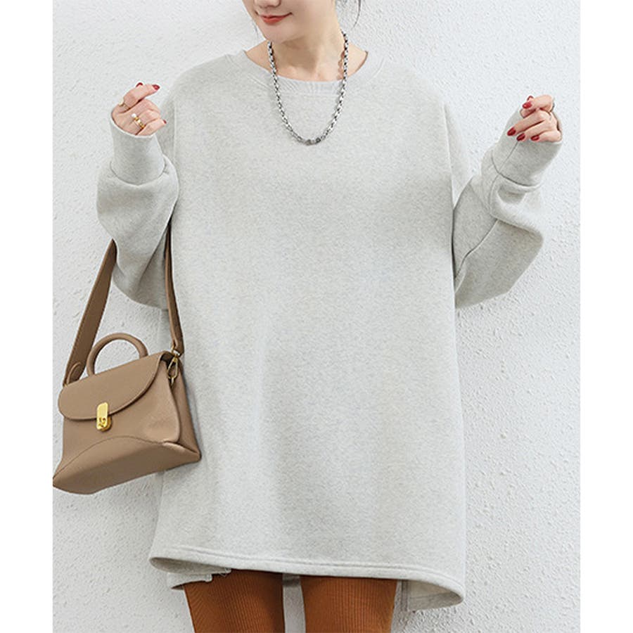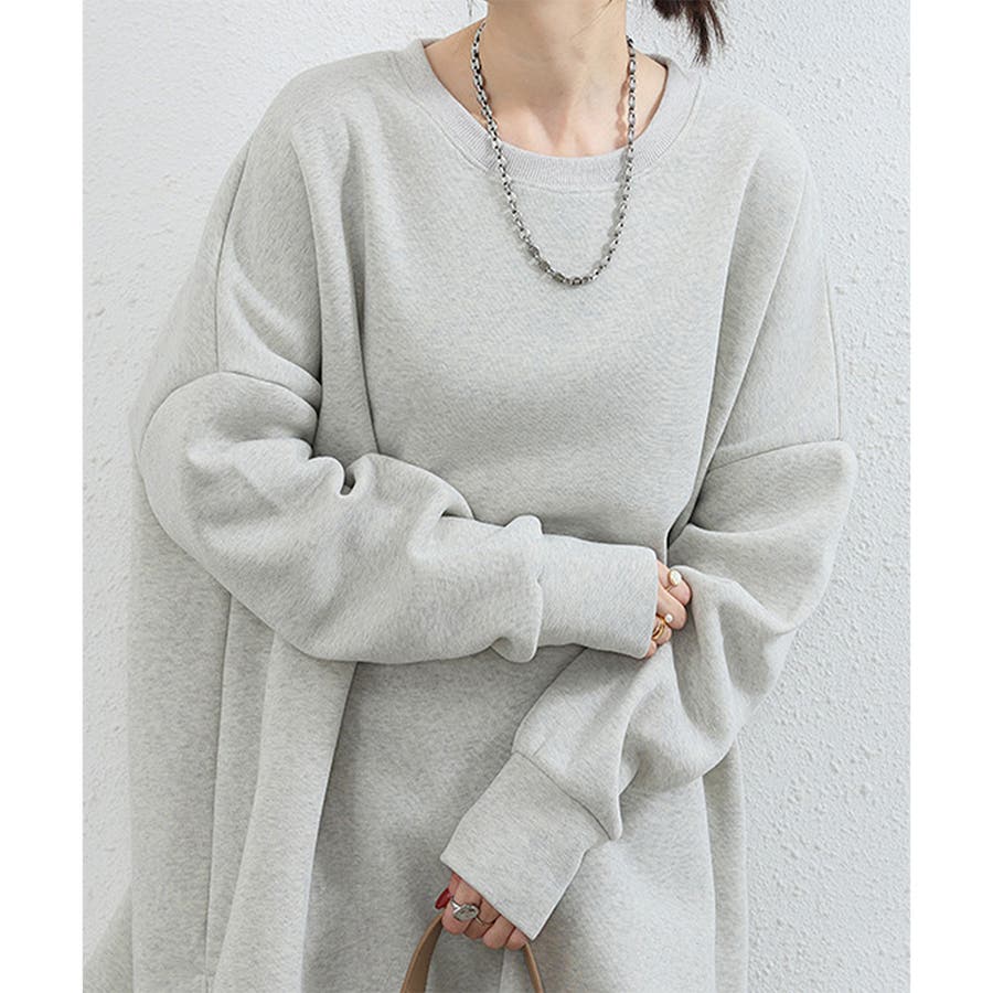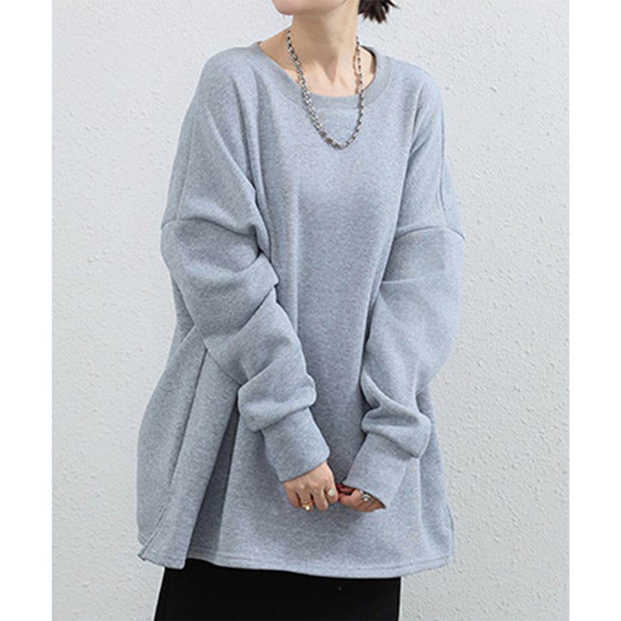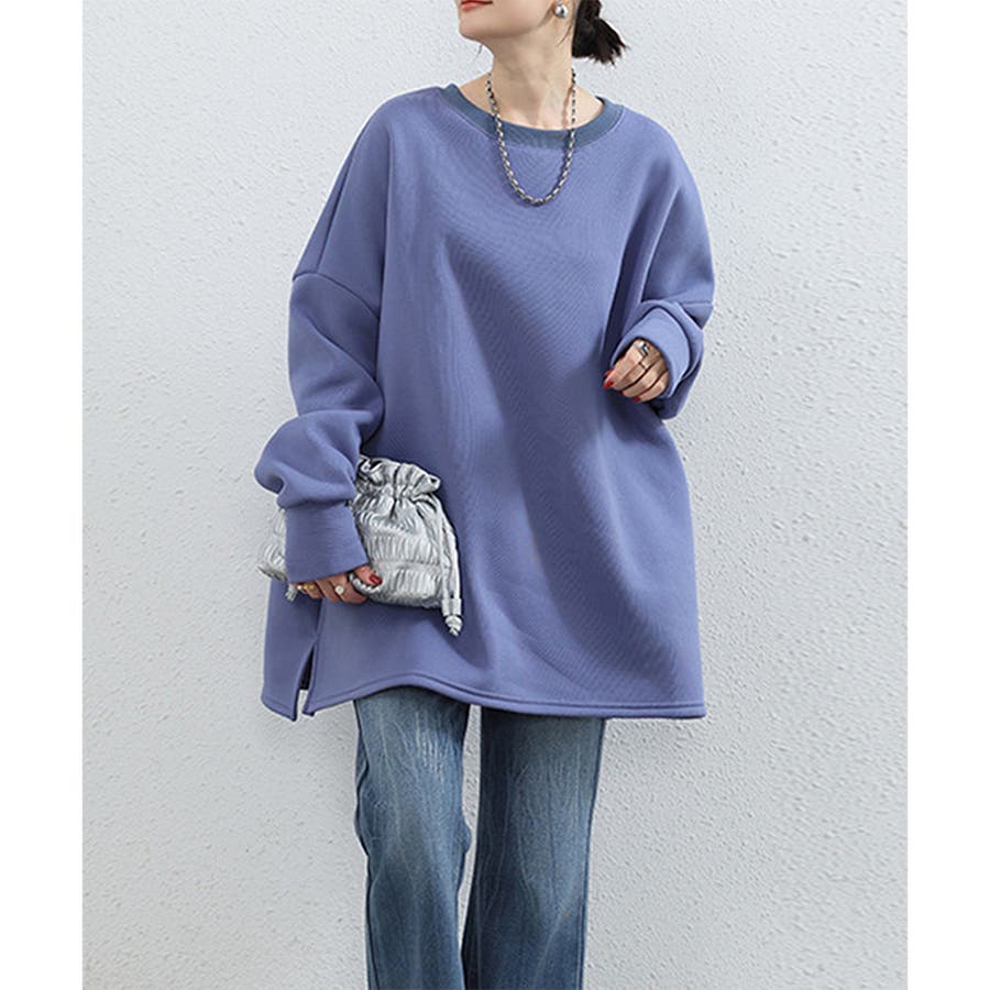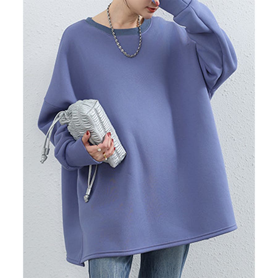 ラウンドネックオーバーサイズプルオーバー レディース 長袖