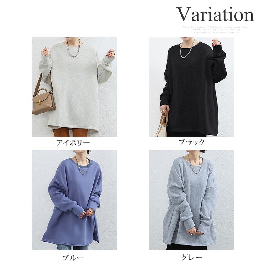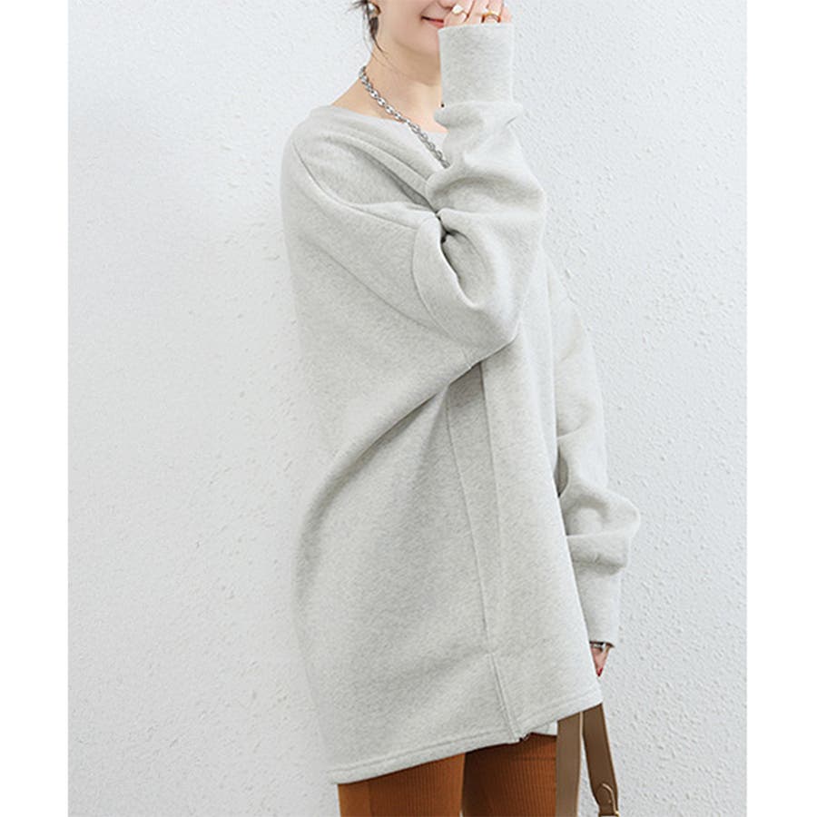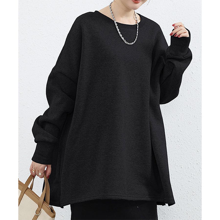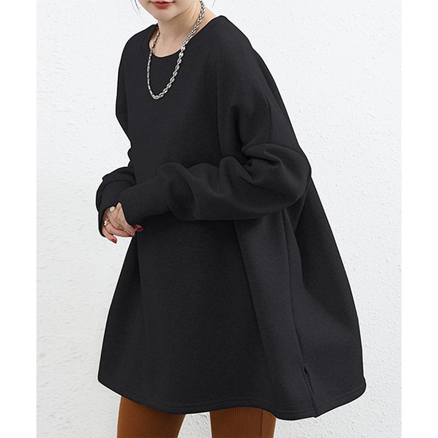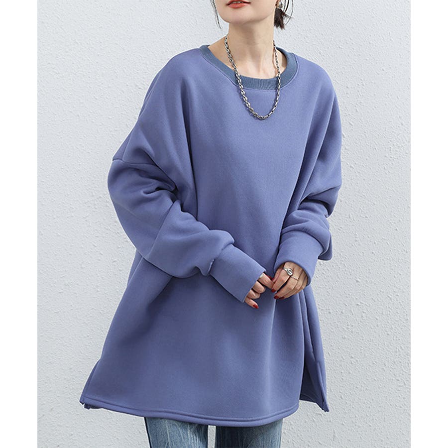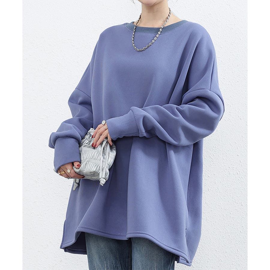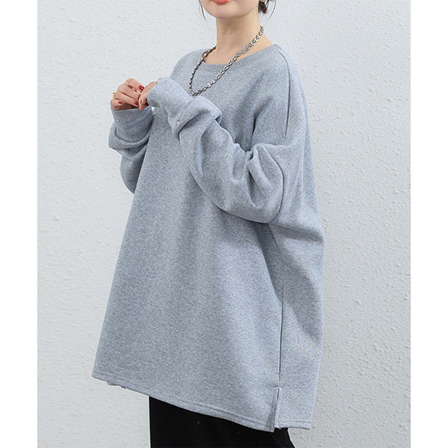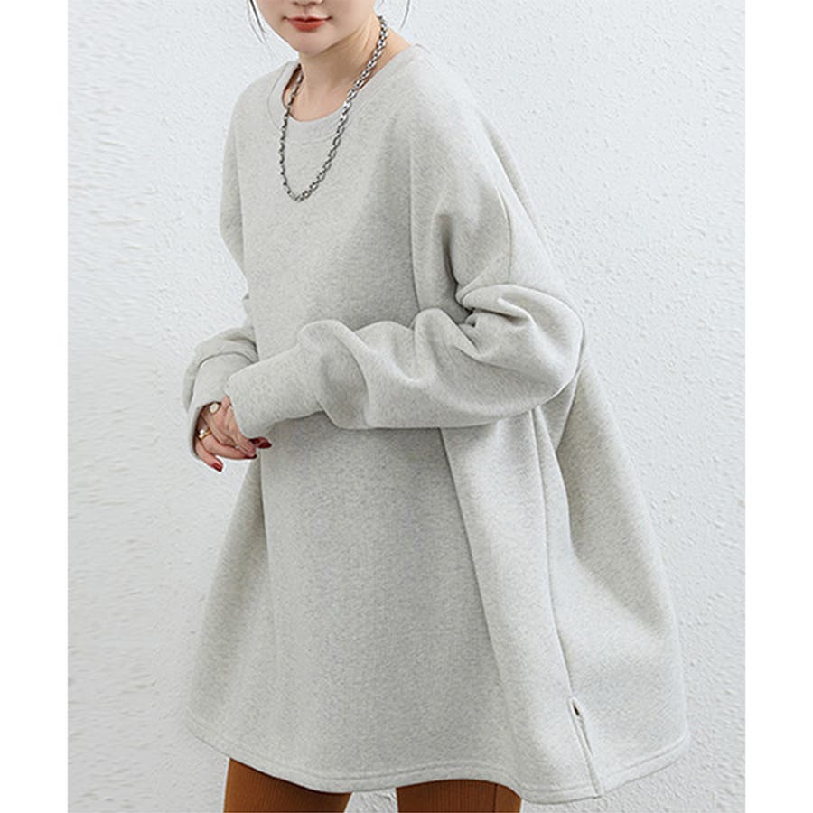 ラウンドネックオーバーサイズプルオーバー レディース 長袖