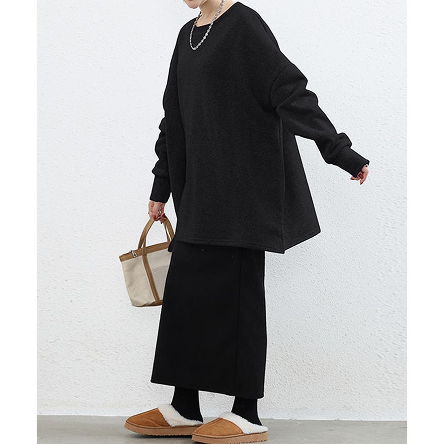 ベーシックなラウンドネックにゆとりのある身幅が、今っぽい抜け感を演出♪