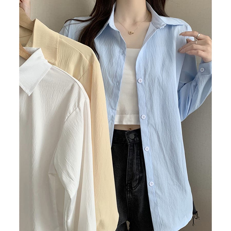 ナチュラルワッシャー風シャツ 前開き 長袖