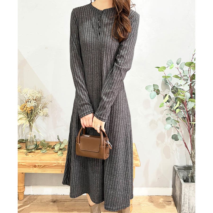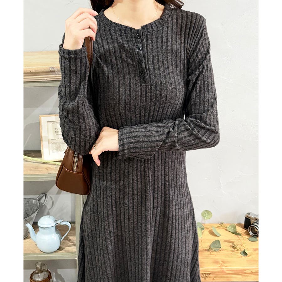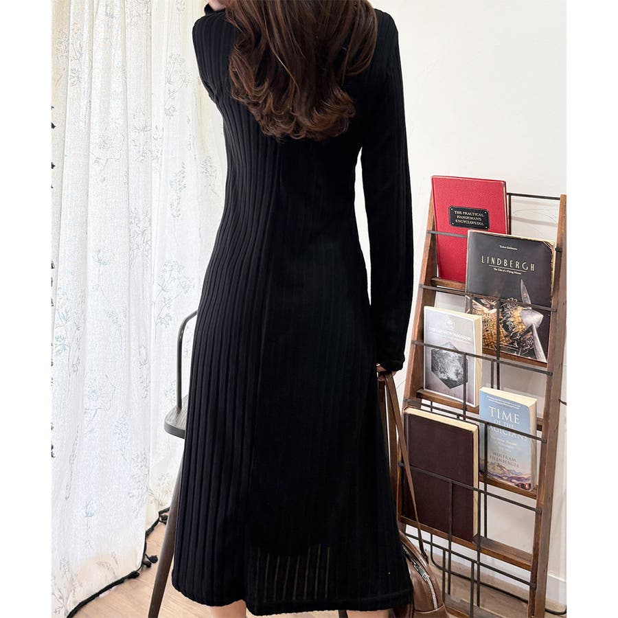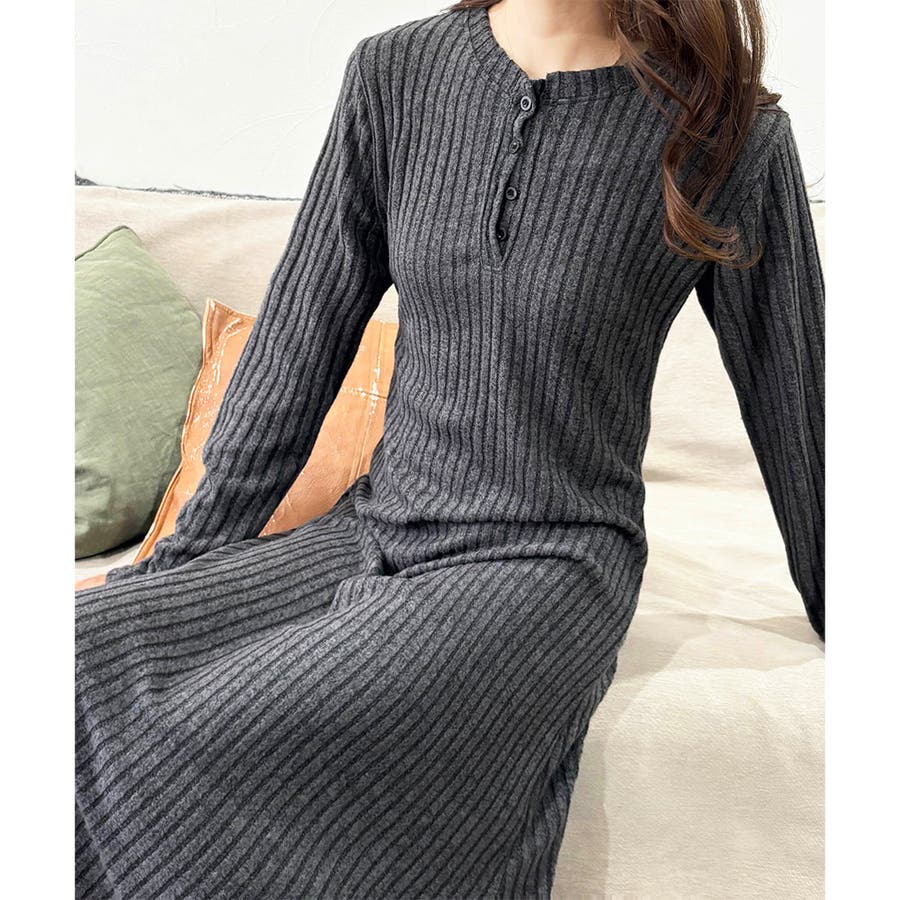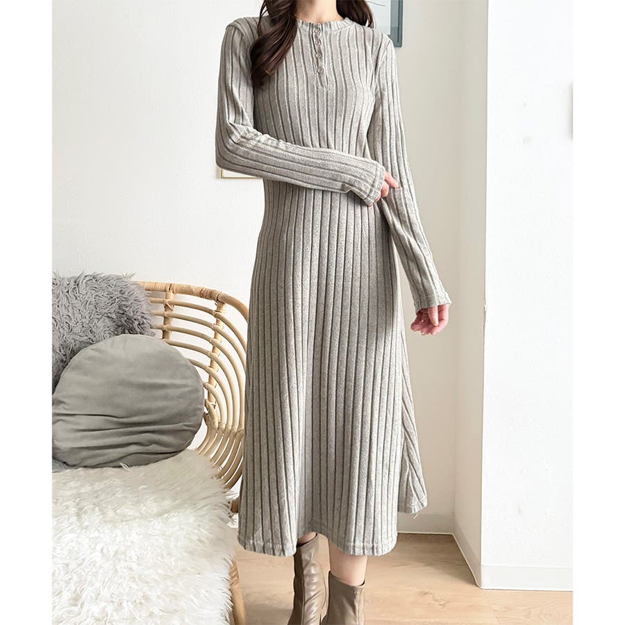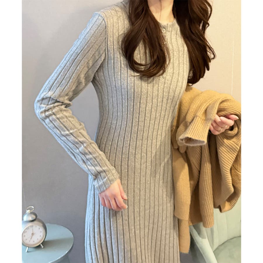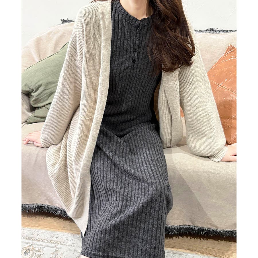細めのリブ編みが、すっきりとした印象に導いてくれるワンピースです。