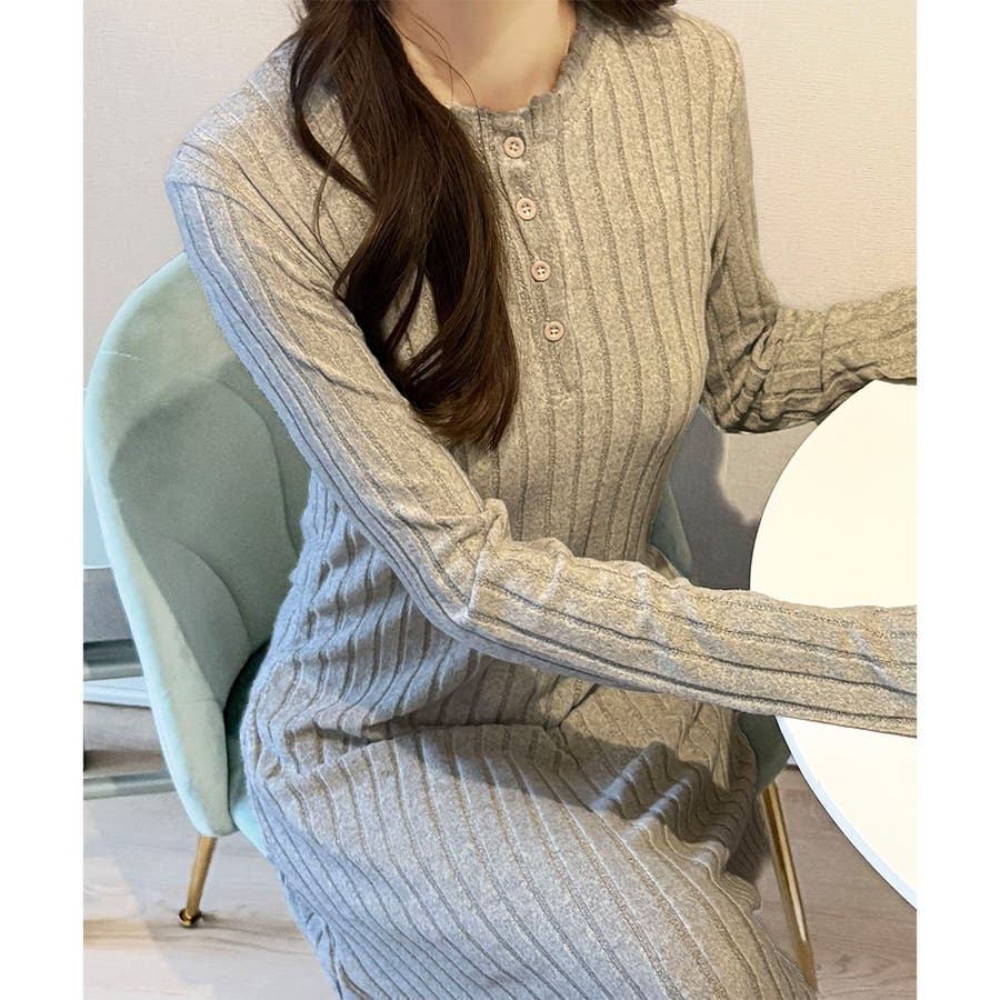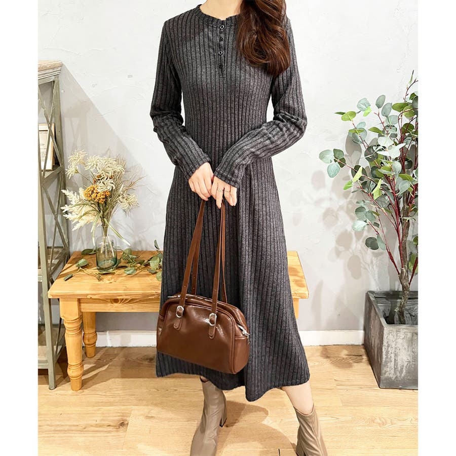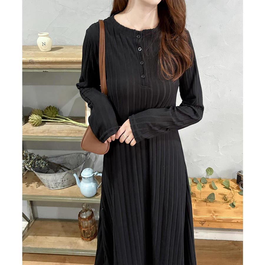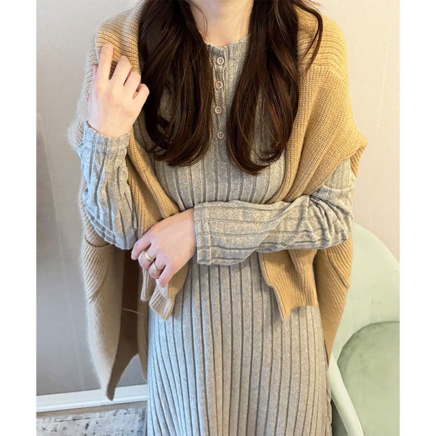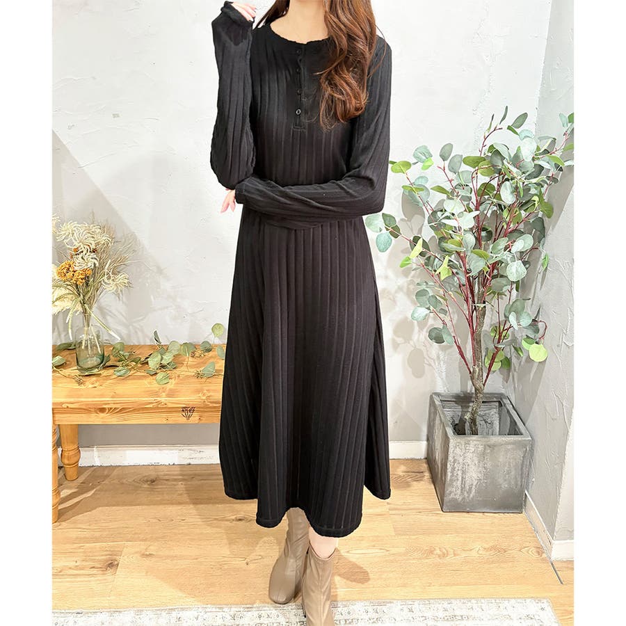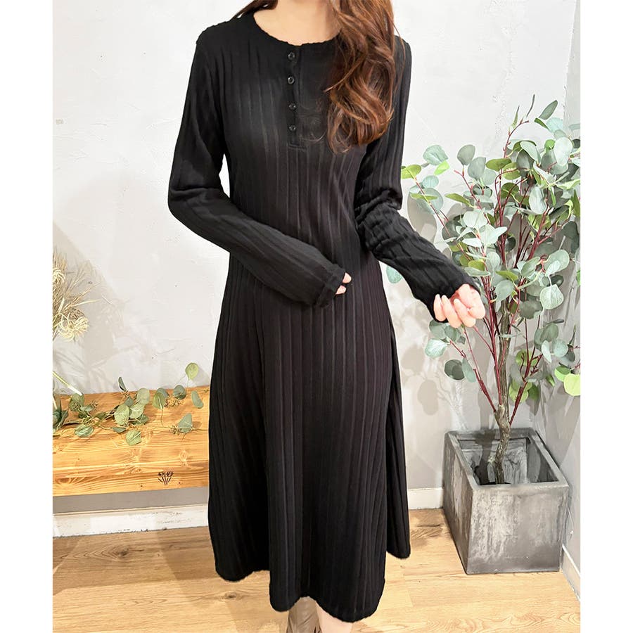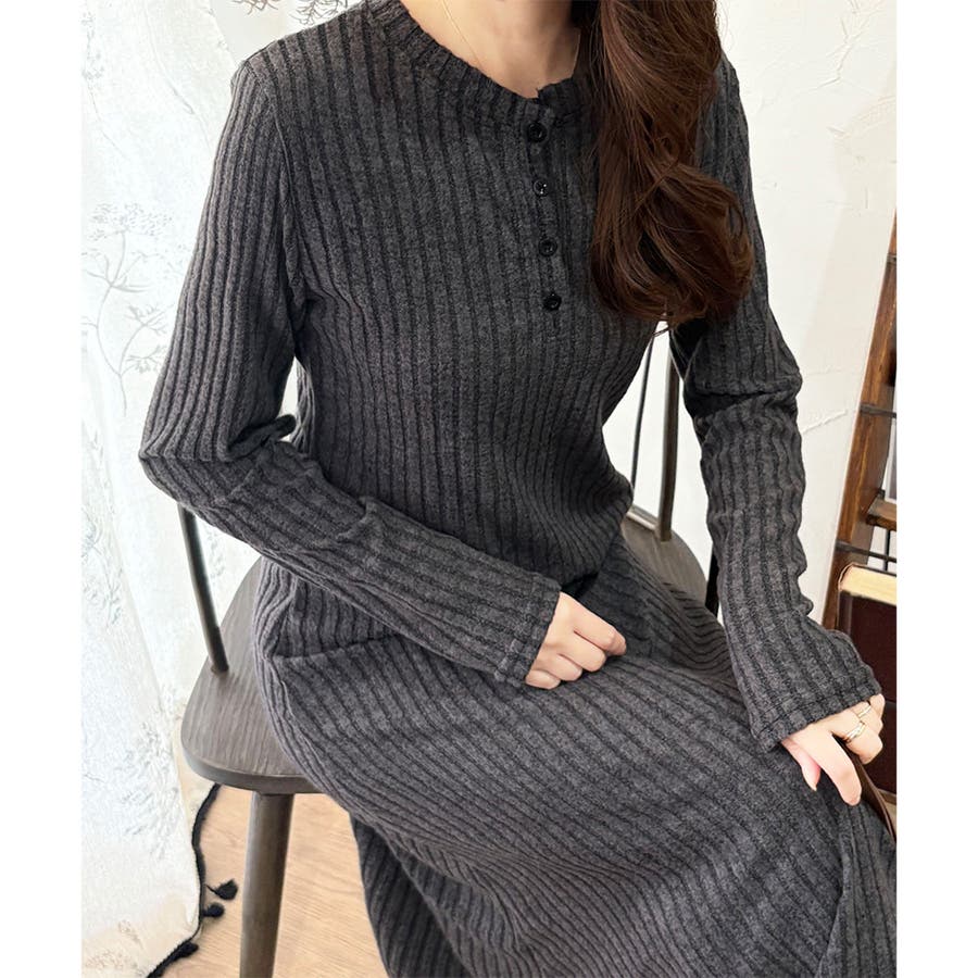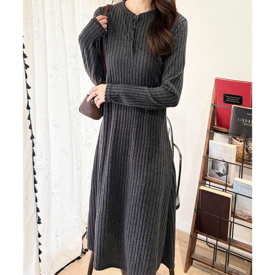 細めのリブ編みが、すっきりとした印象に導いてくれるワンピースです。