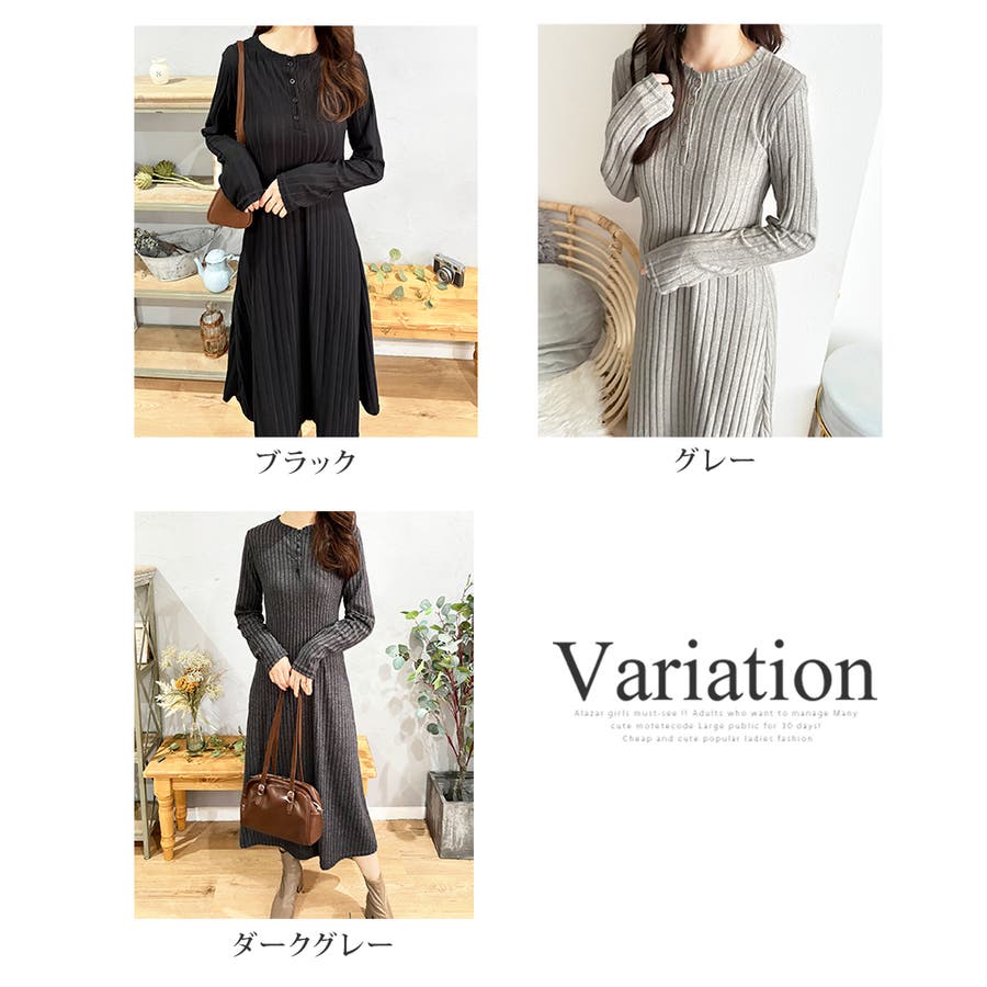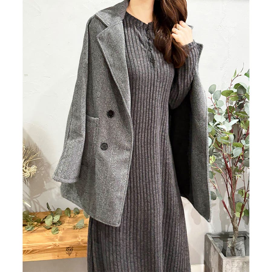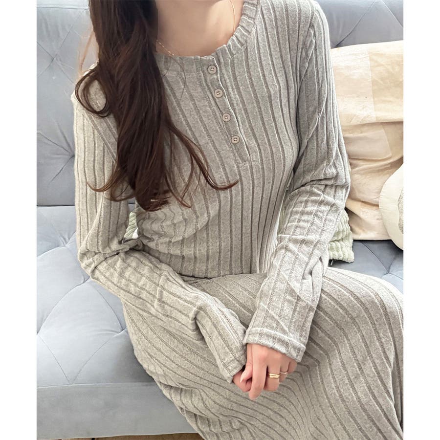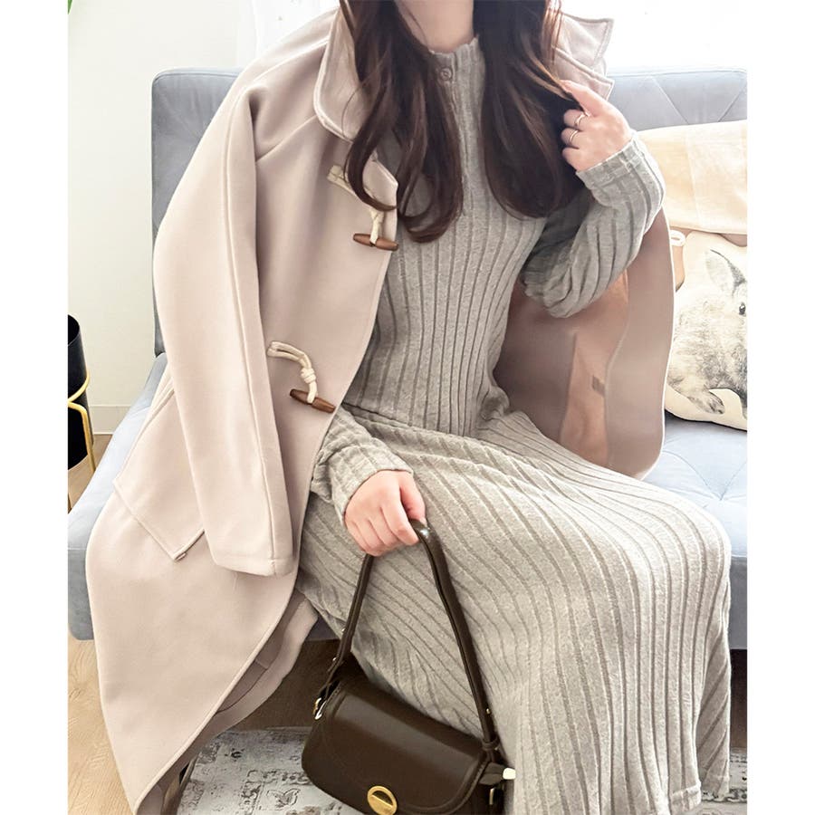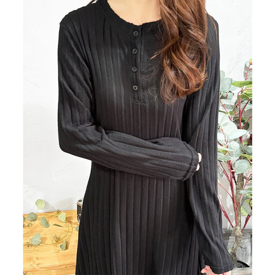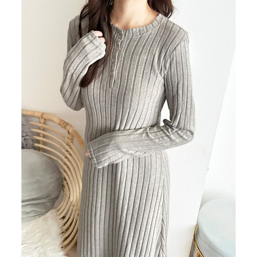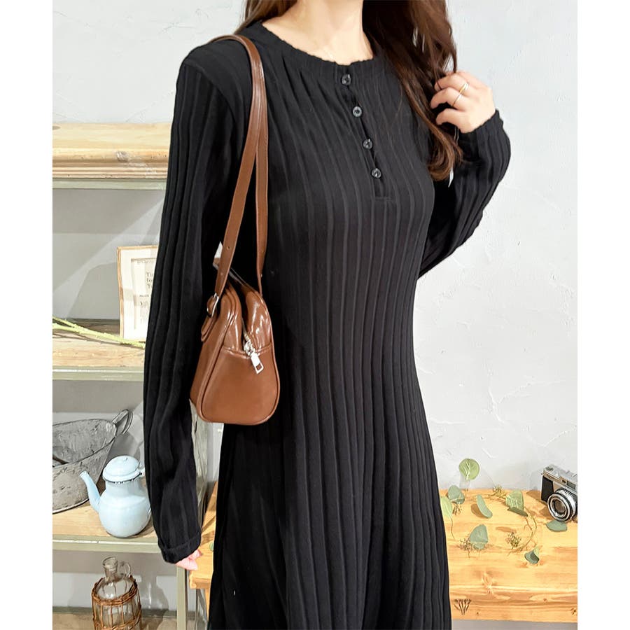 細めのリブ編みが、すっきりとした印象に導いてくれるワンピースです。