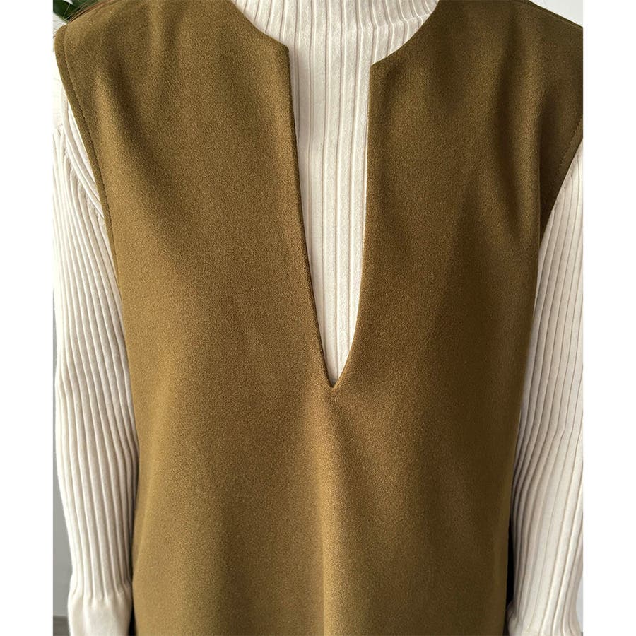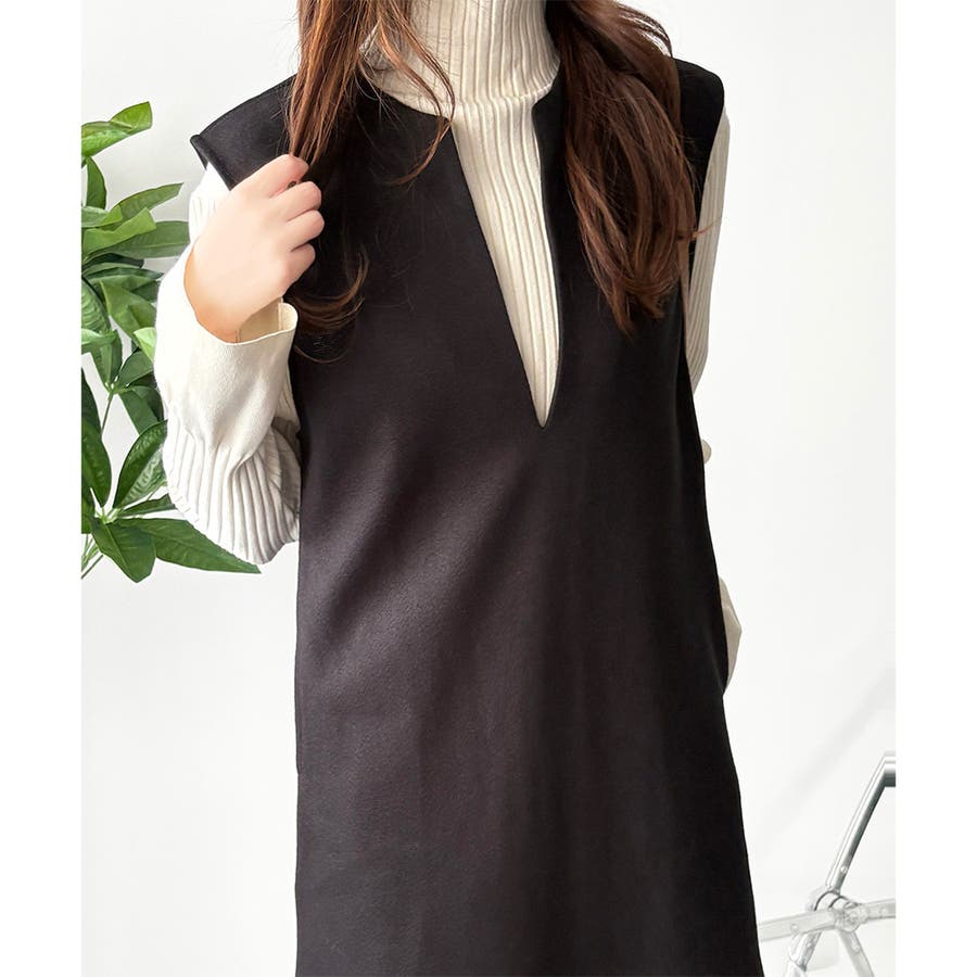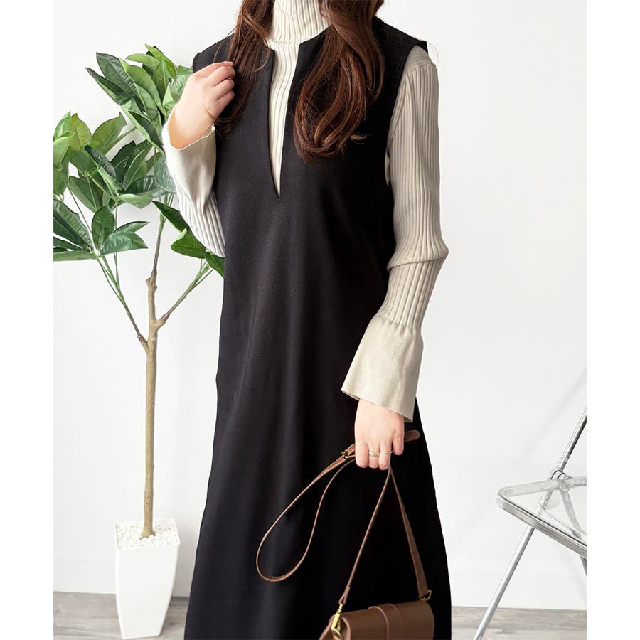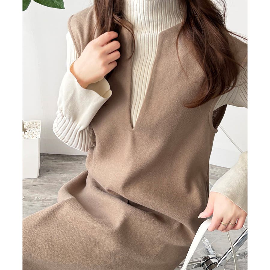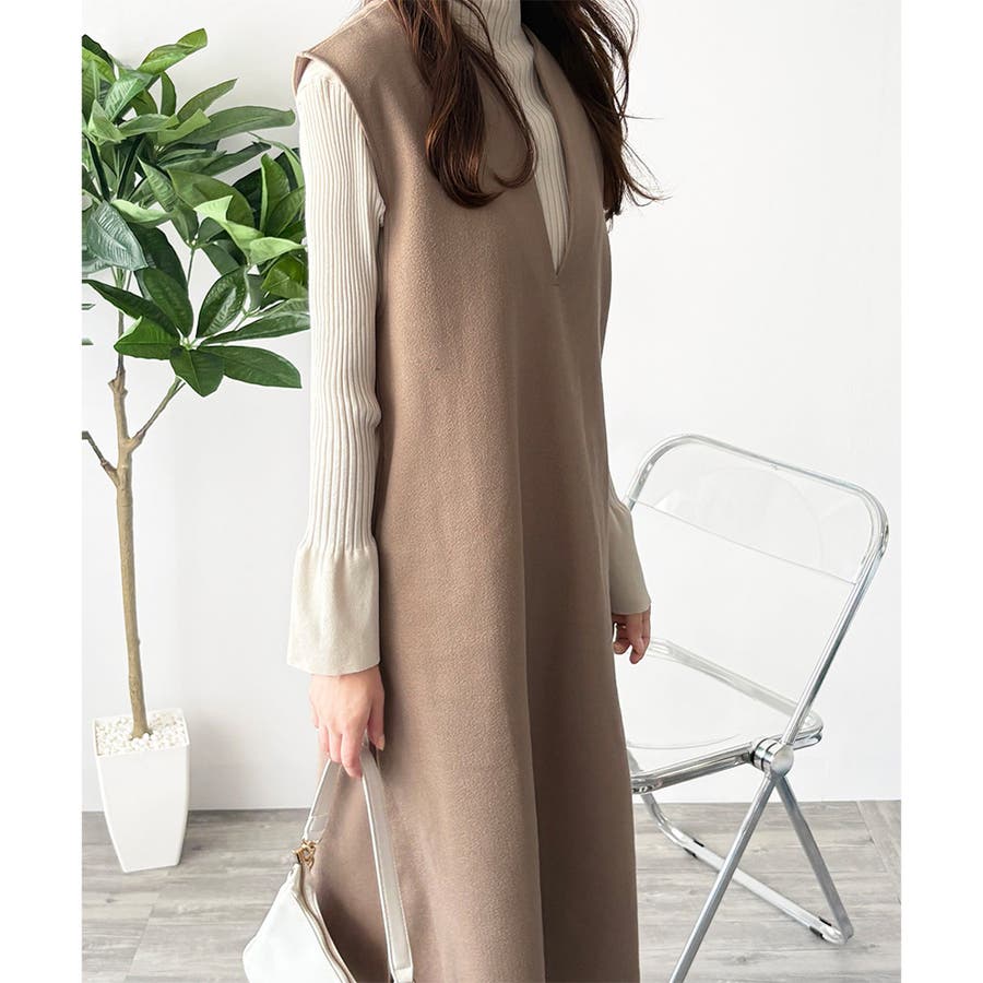 タートルネックやリブトップスを合わせると、上品なレイヤードが完成。