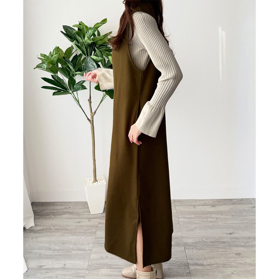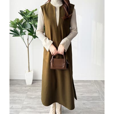 ナチュラルキーネックジャンパースカート 体型カバー ロングワンピース