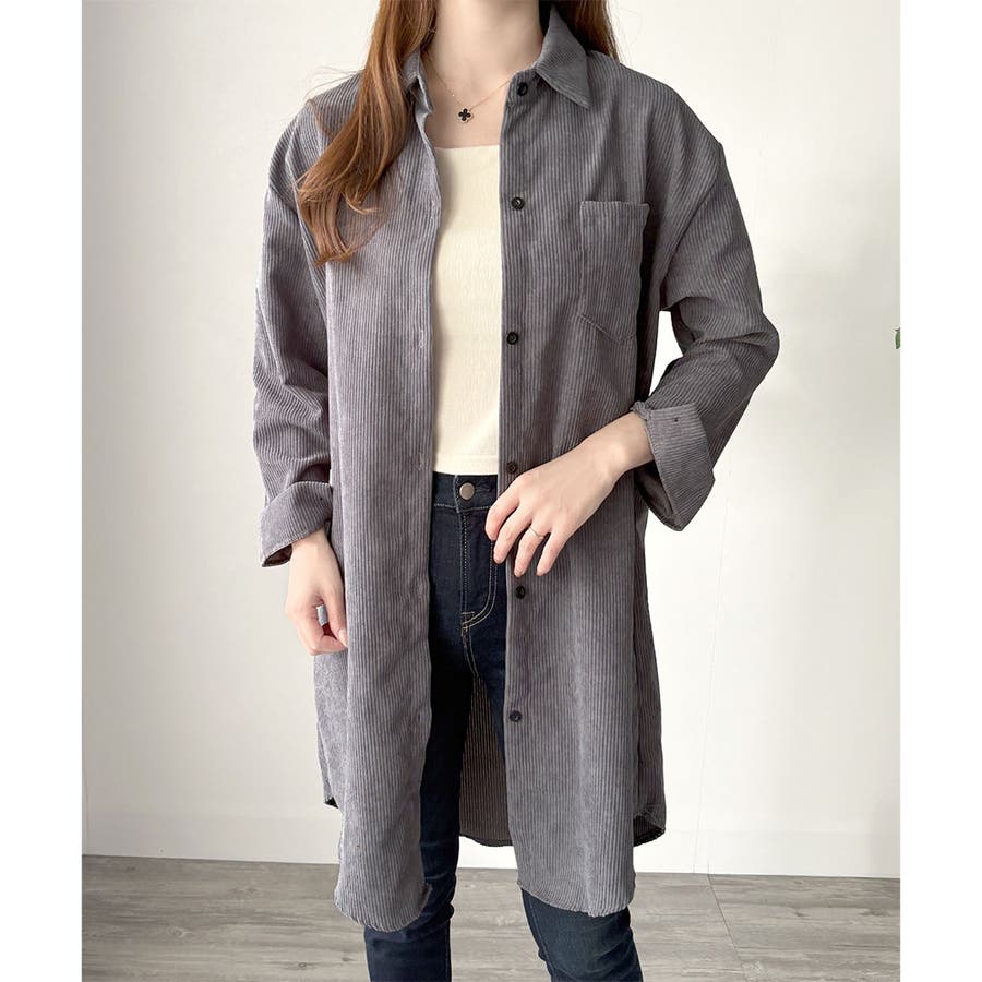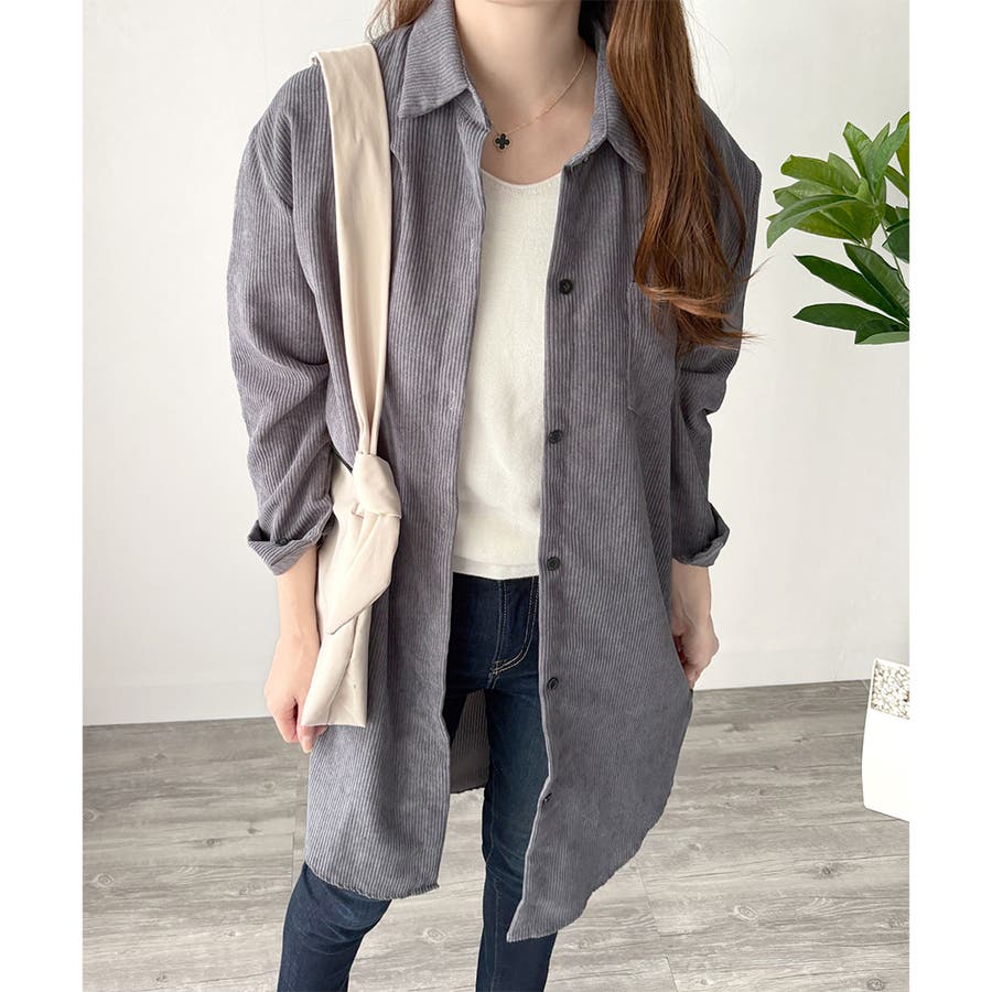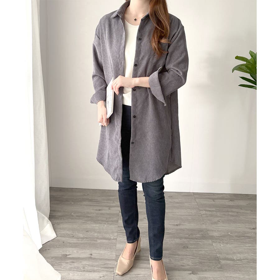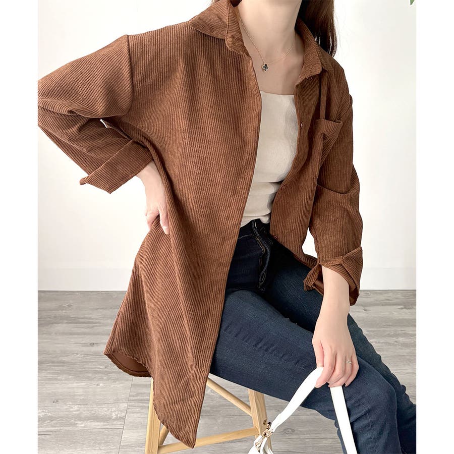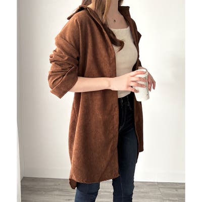 オーバーサイズコーデュロイシャツ 羽織り ロング