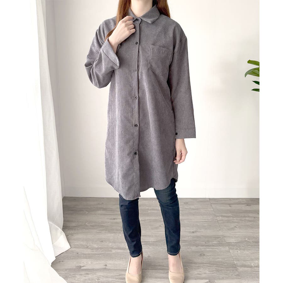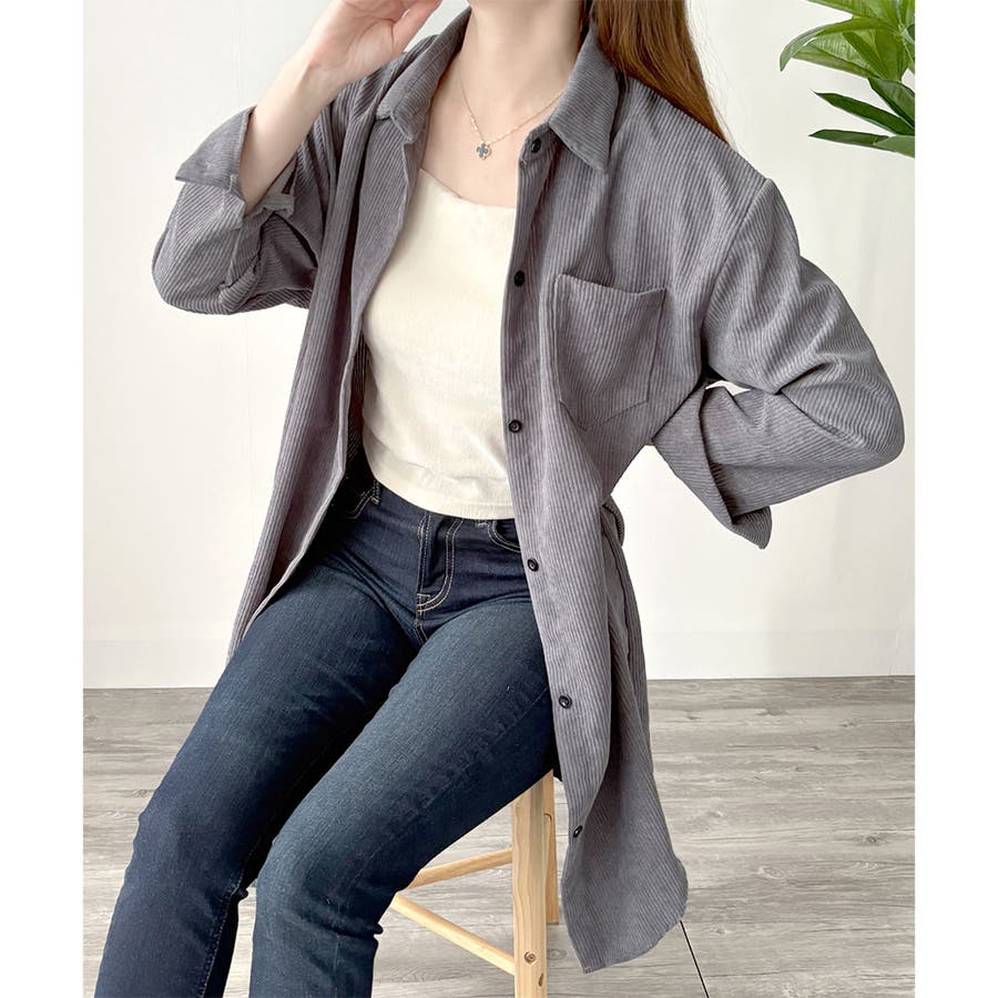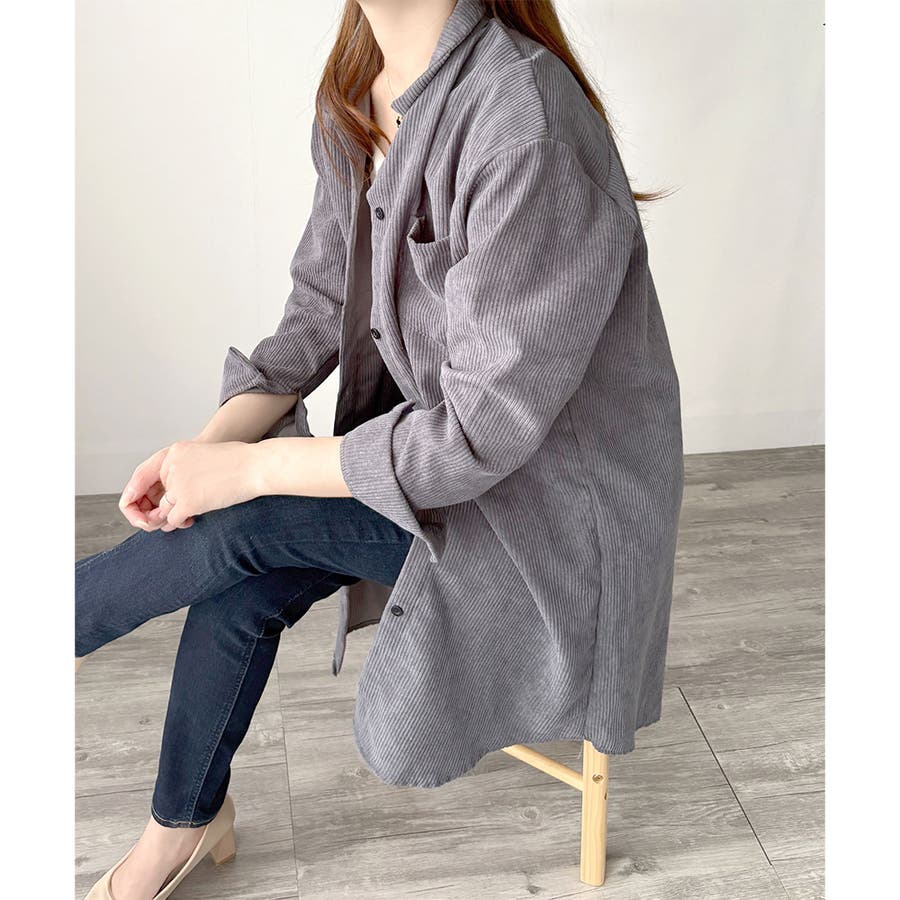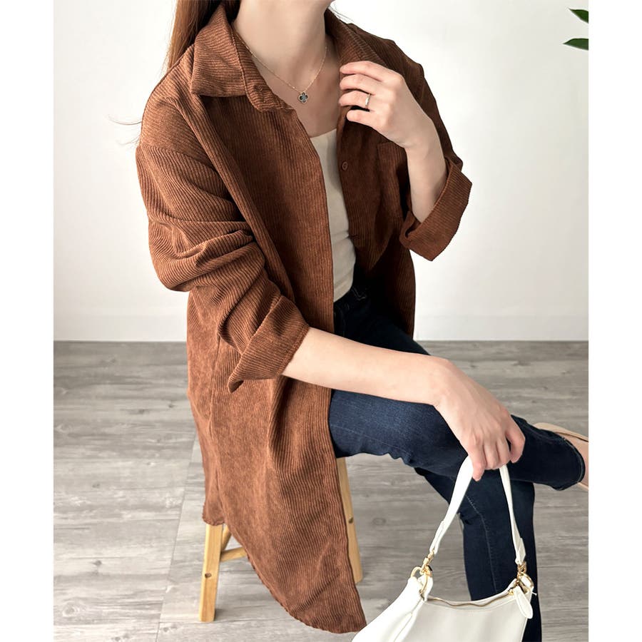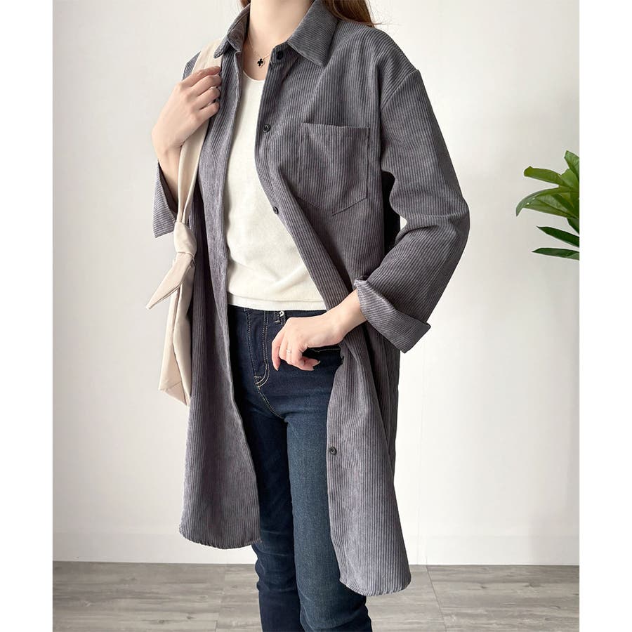 オーバーサイズコーデュロイシャツ 羽織り ロング