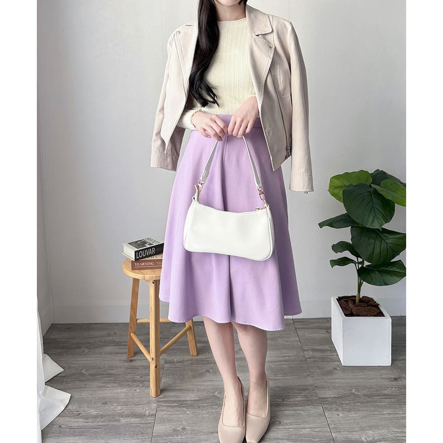 ふんわり広がるシルエットが、脚のラインをすっきりと見せてくれます。