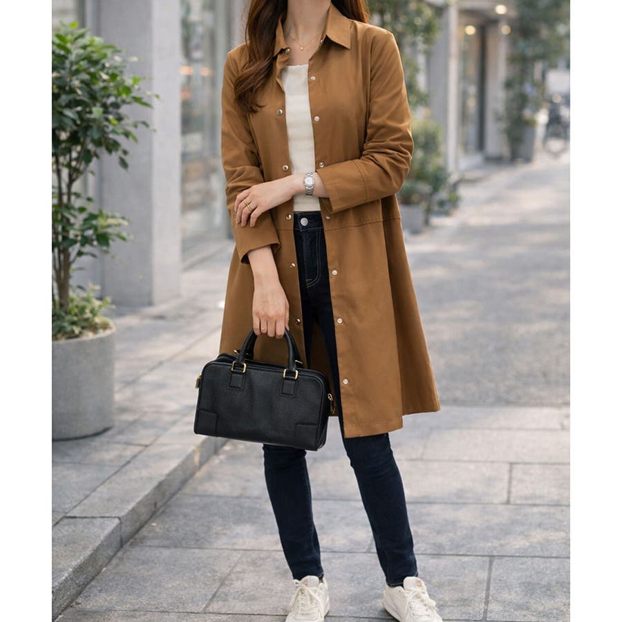 縦ラインを意識したロング丈で、自然とスタイルアップを叶えてくれます。