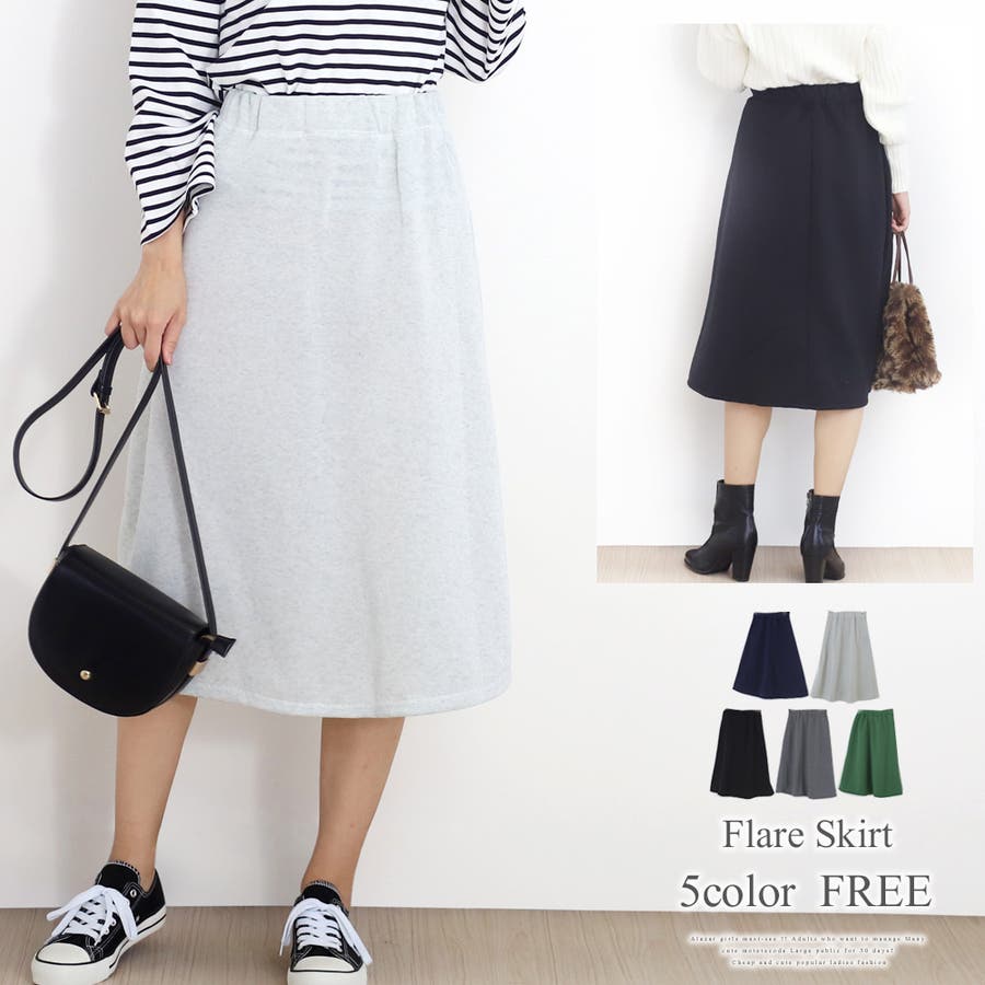 フレアスカート ロングスカート ボトムス 無地 シンプル ミモレ丈 レディース