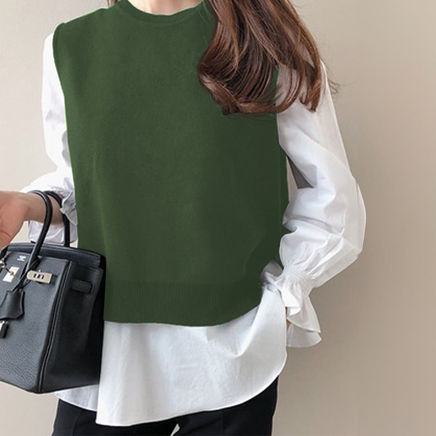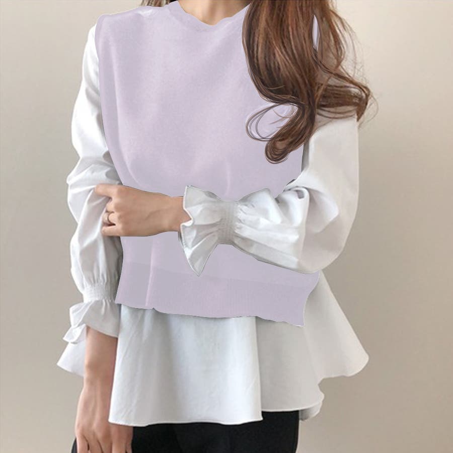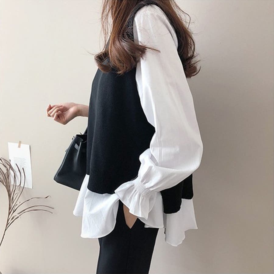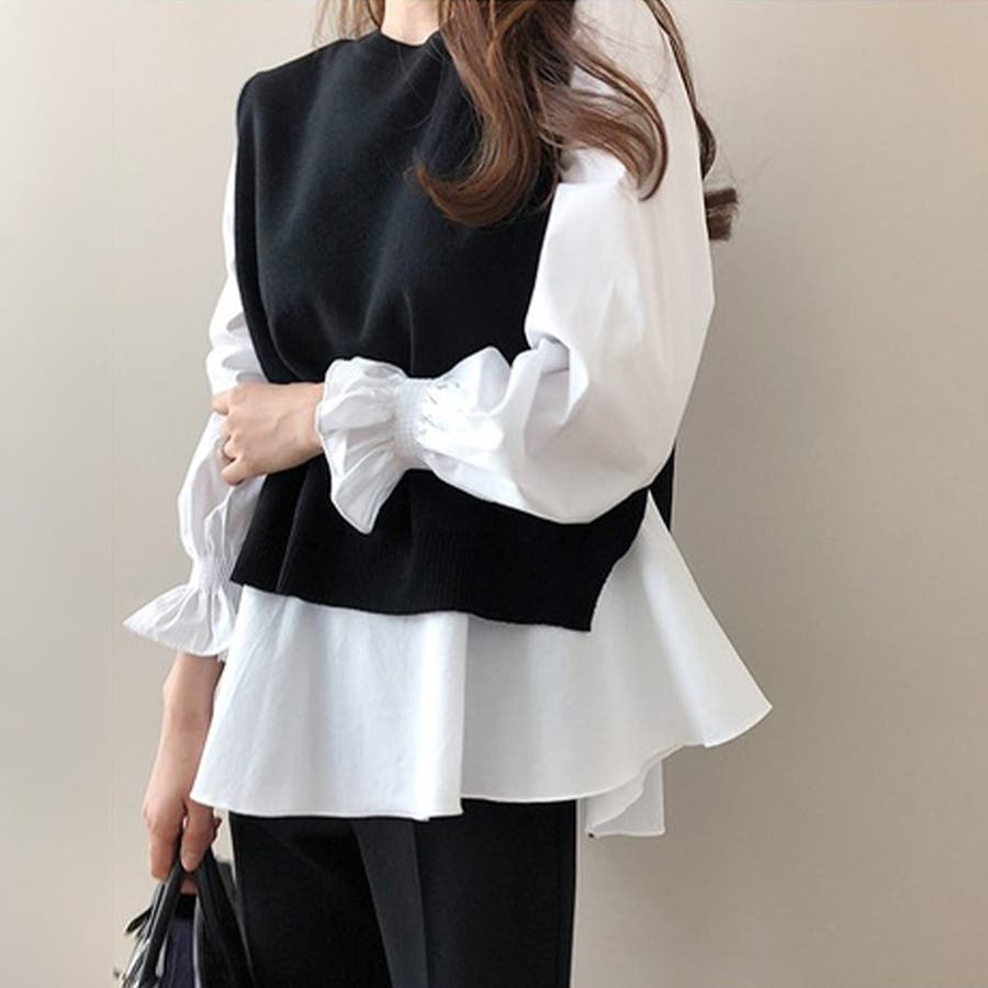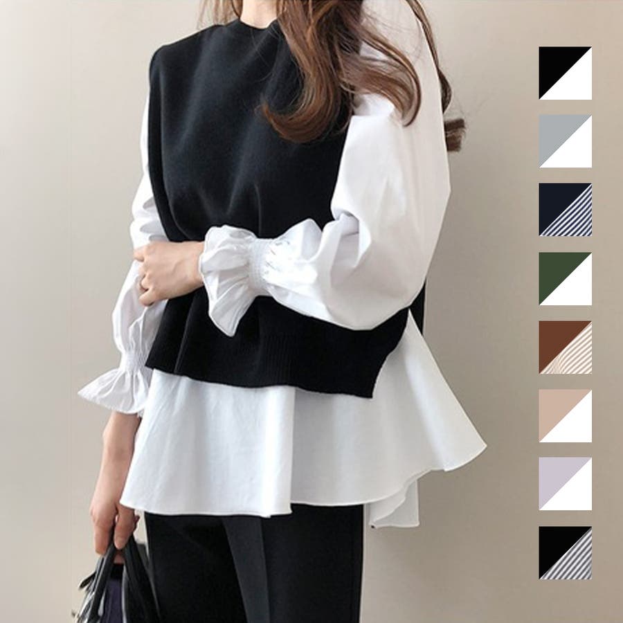 ニットベスト付きブラウス オフィス シンプル シャツ 秋 冬 レディース