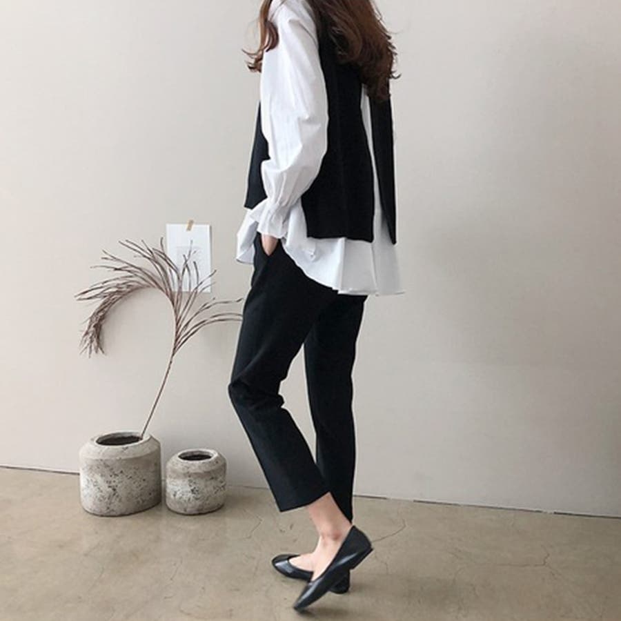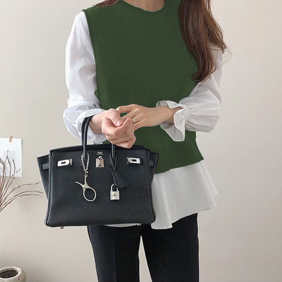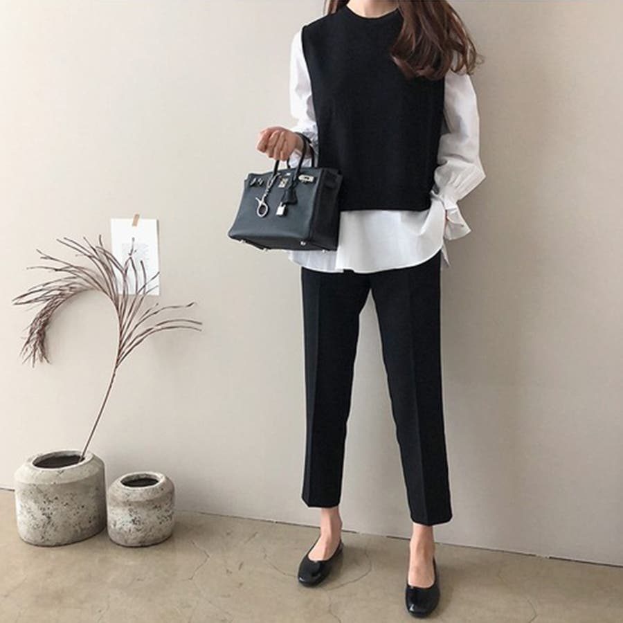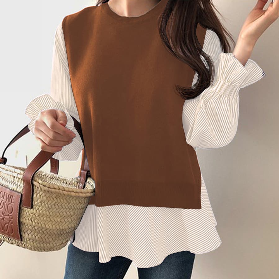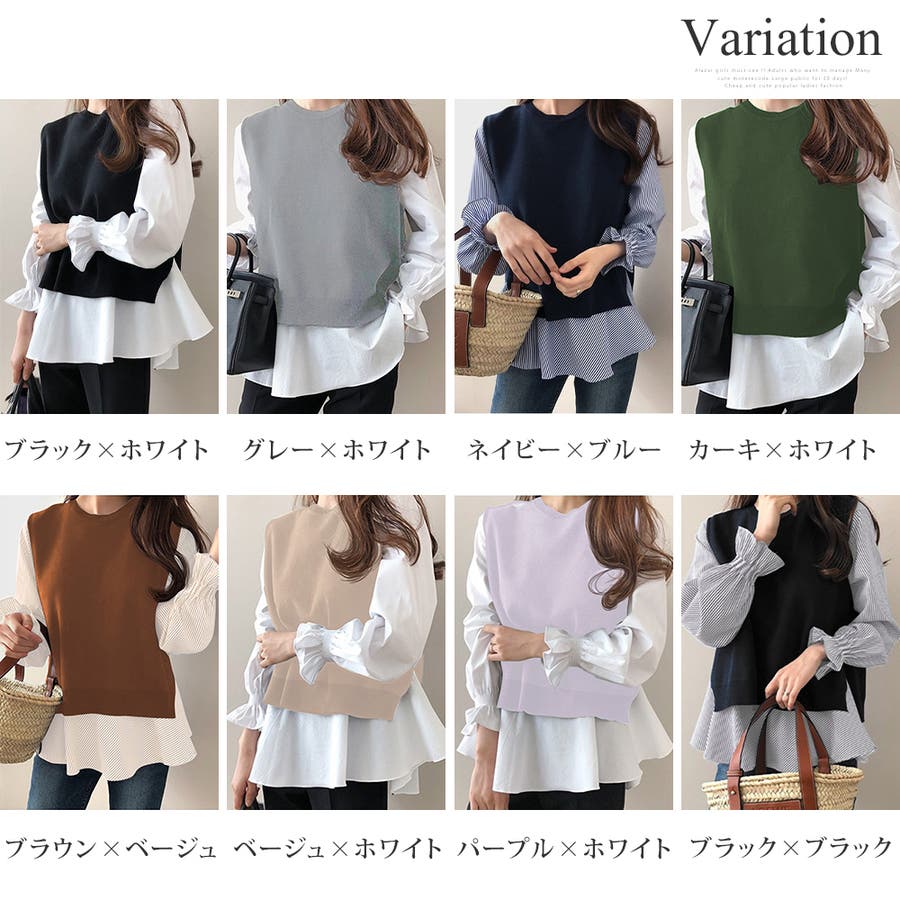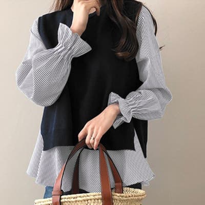 ニットベスト付きブラウス オフィス シンプル シャツ 秋 冬 レディース
