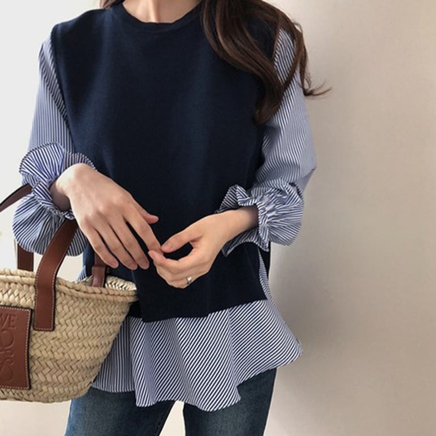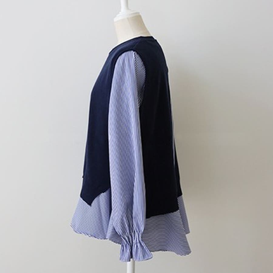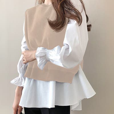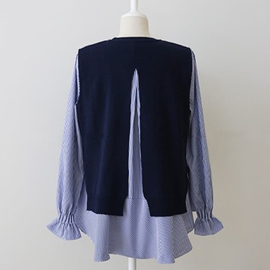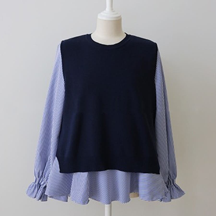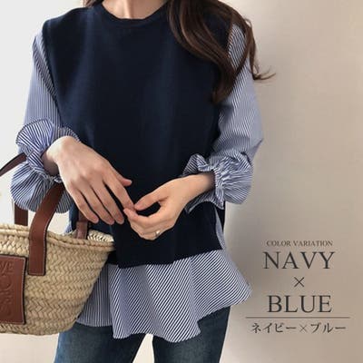 ・ニットとブラウスを分けて着る事ができるので、その場のシーンに合わせて使い分けできる。着回しにも最適です◎