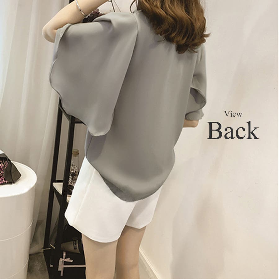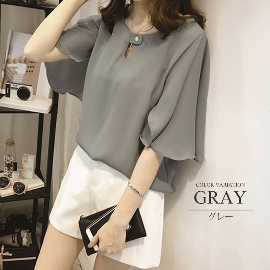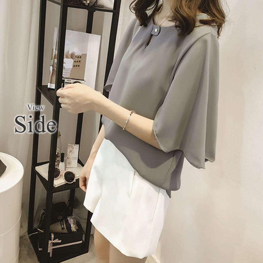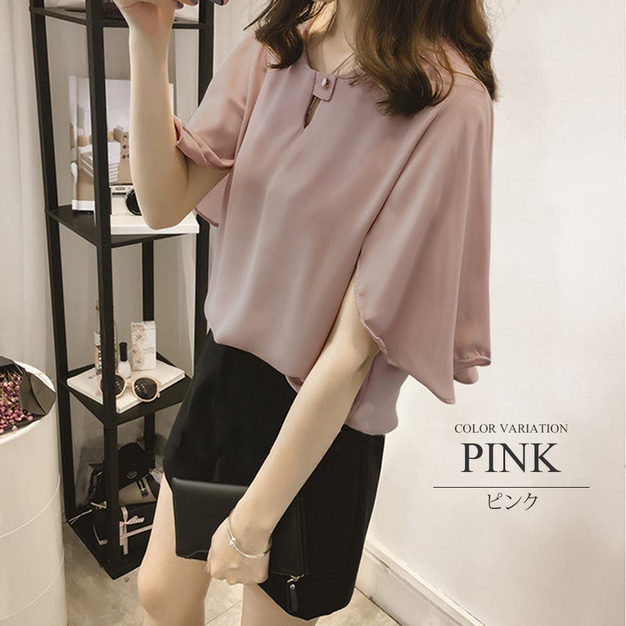 フレアスリーブブラウス 半袖 かわいい シンプル キレイ 通勤 夏 レディース