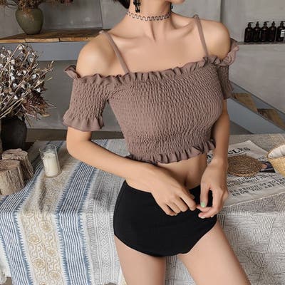 S M L XL ブラック ブラウン グリーン ピンク 黒色 茶色 緑色 桃色 かわいい おしゃれ 大人かわいい 韓国ファッション きれいめ ナチュラル シンプル アジアン 体型カバー レディース セット スイムウェア 海 プール ハイウエスト フリル リボン シースルー 21SS/春夏新作 夏先行