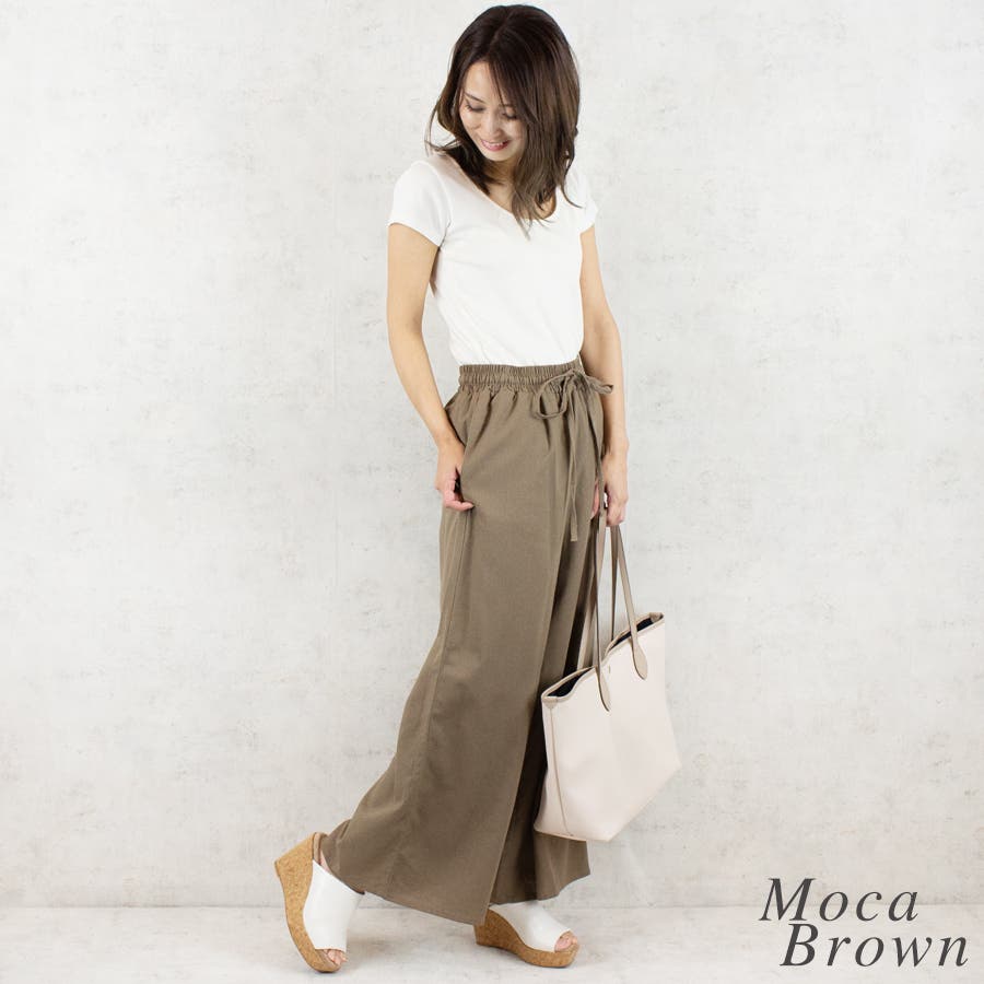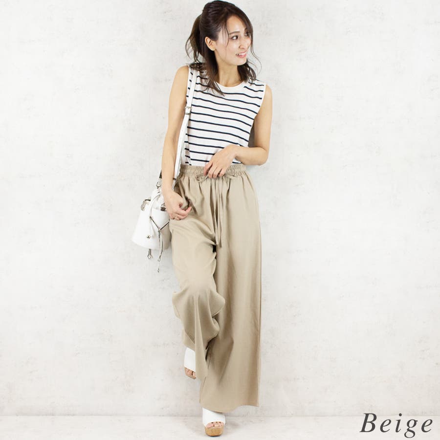 リネンライクの楽ちんワイドパンツ。