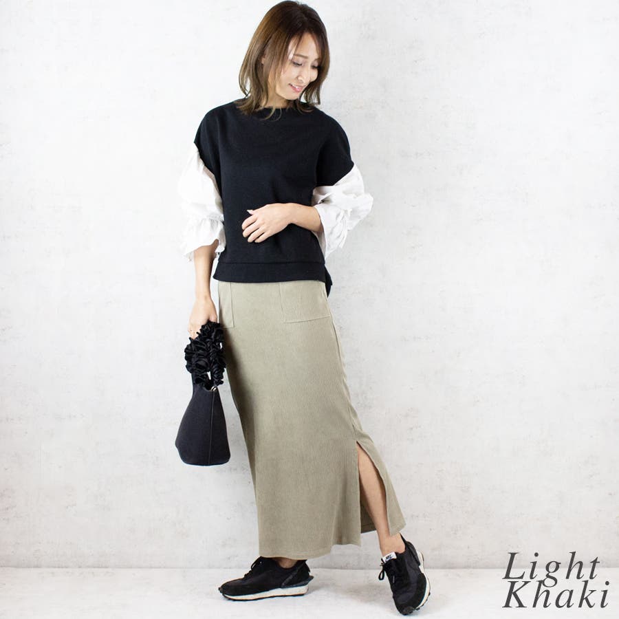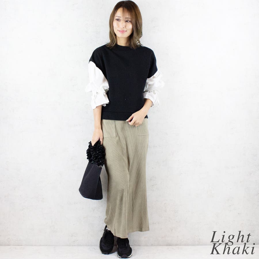 リブ素材にベイカーポケットで縦長シルエットを生み出し、スタイルアップ!