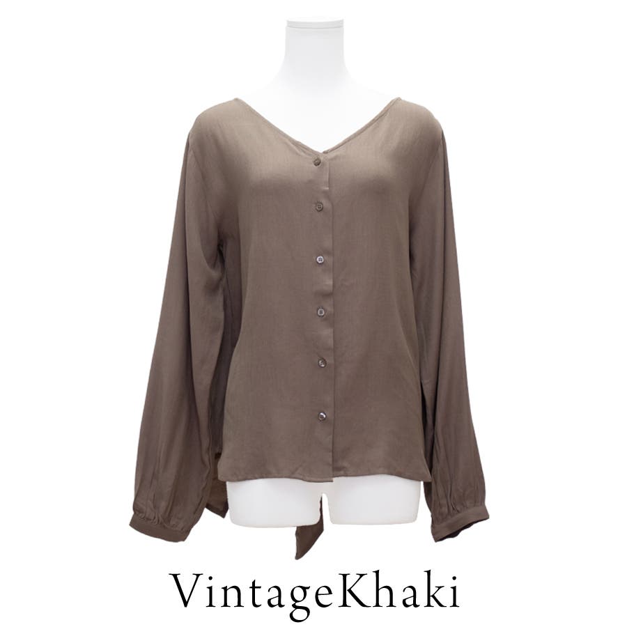 Vネック/terrace/通学/通勤/ざっくり/シャツ/ブラウス/リボン/ボタン/
