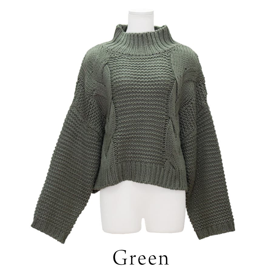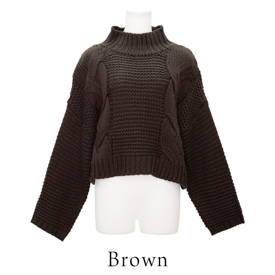 ケーブルクロップド丈ニット