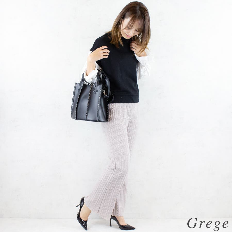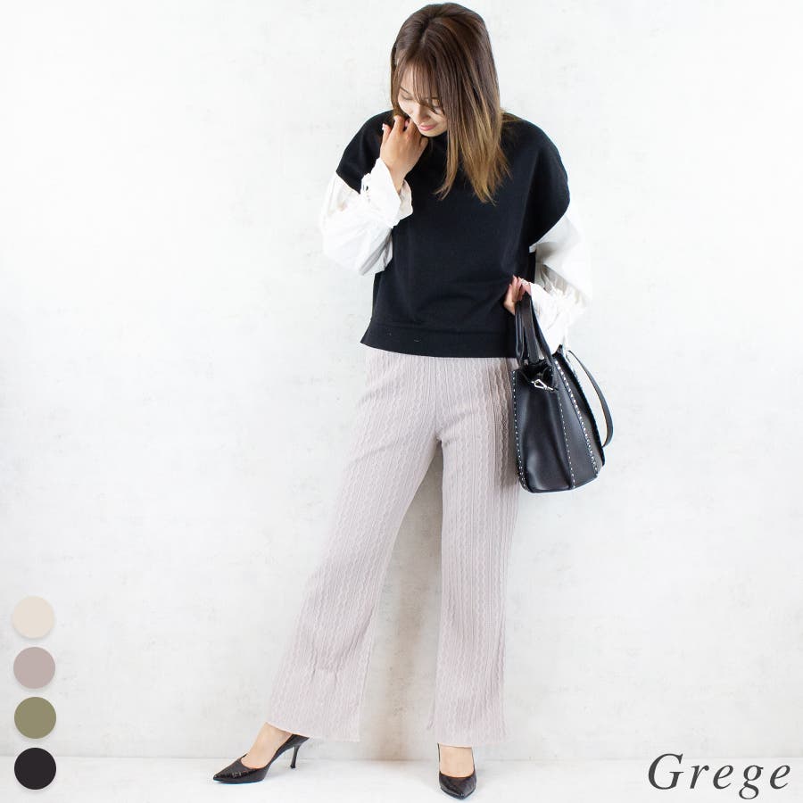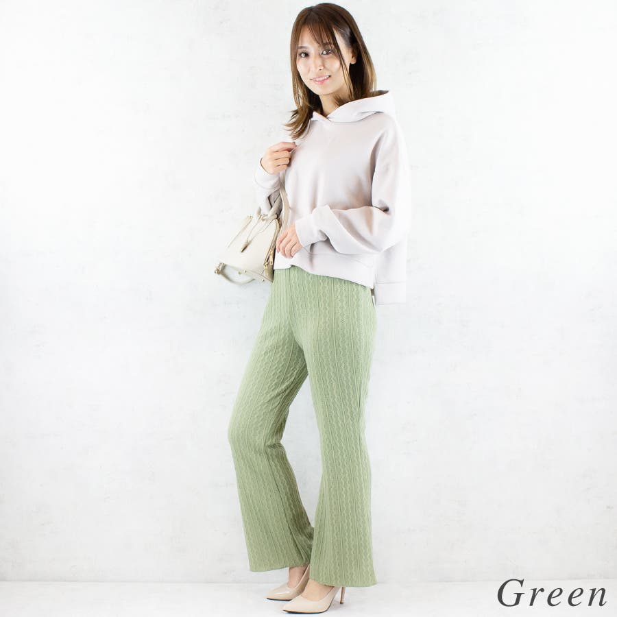 ケーブルニットソーフレアパンツ
