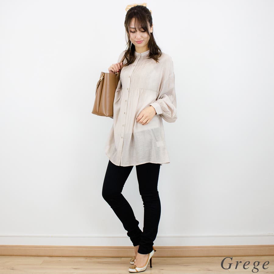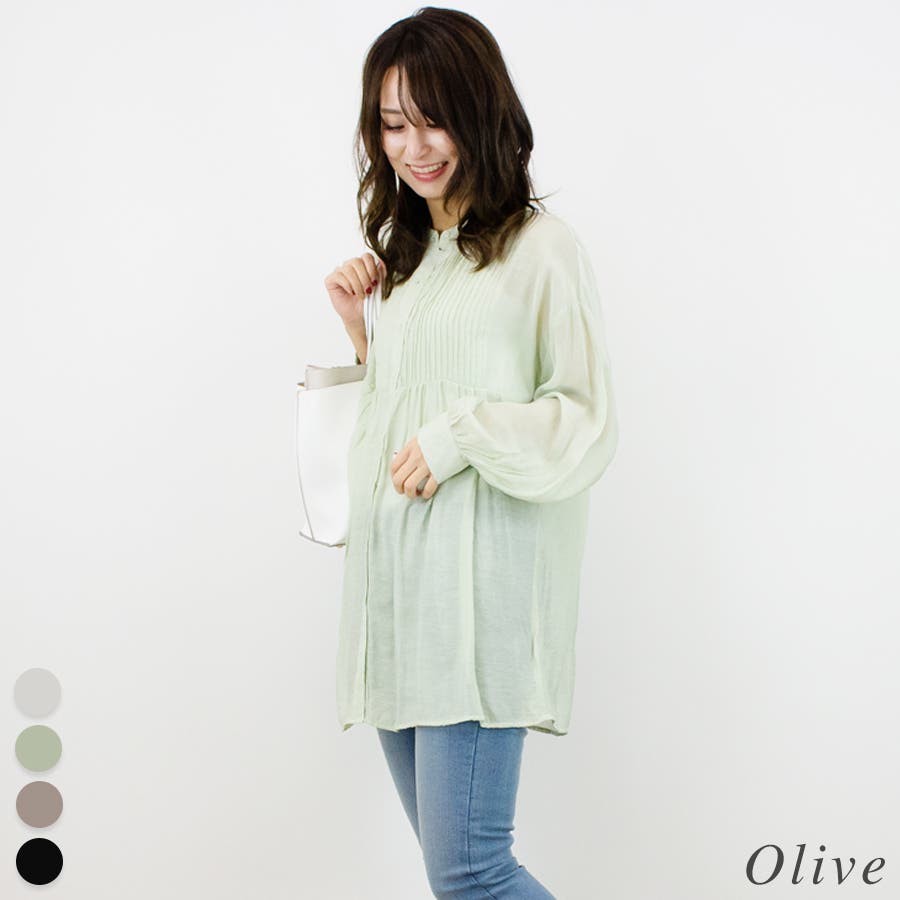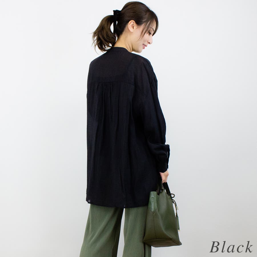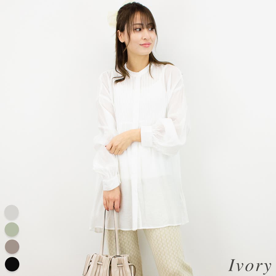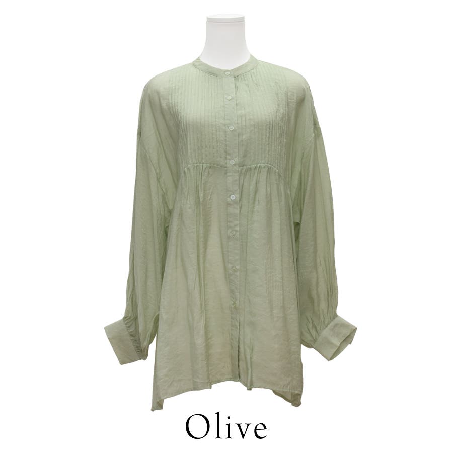 通学/通勤/シアー/ピンタック/バンドカラー/ブラウス/シャツ/