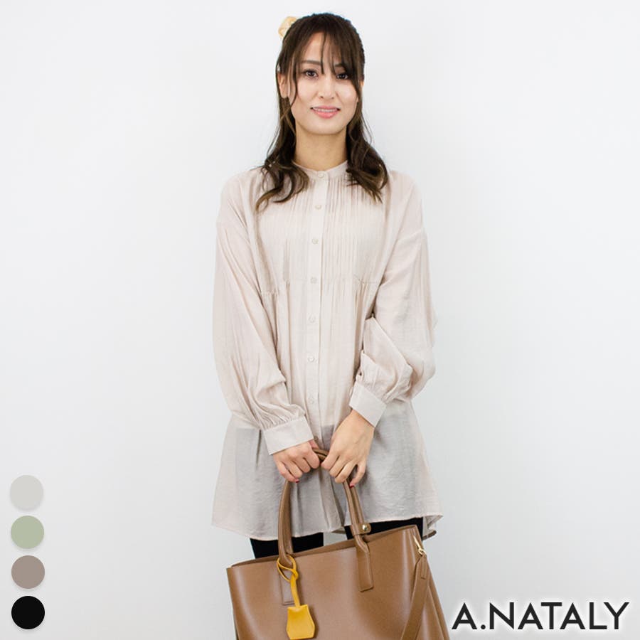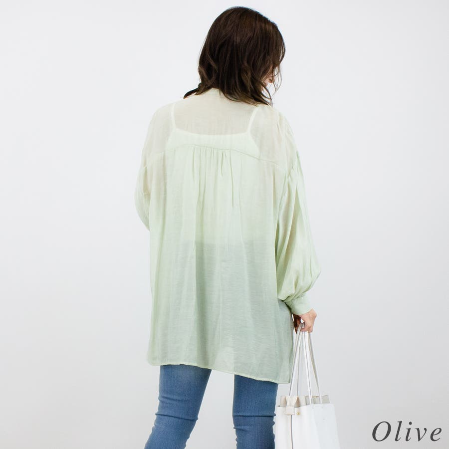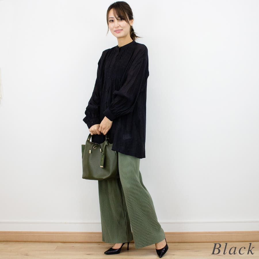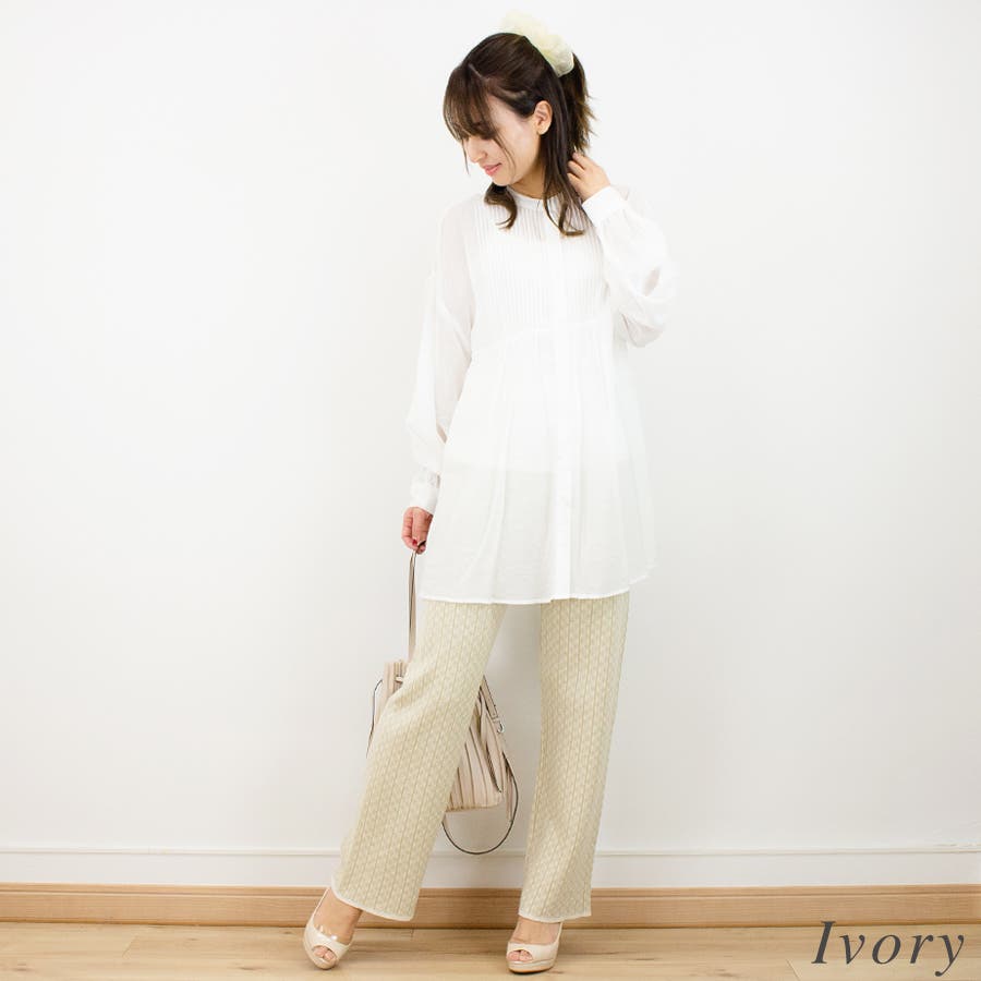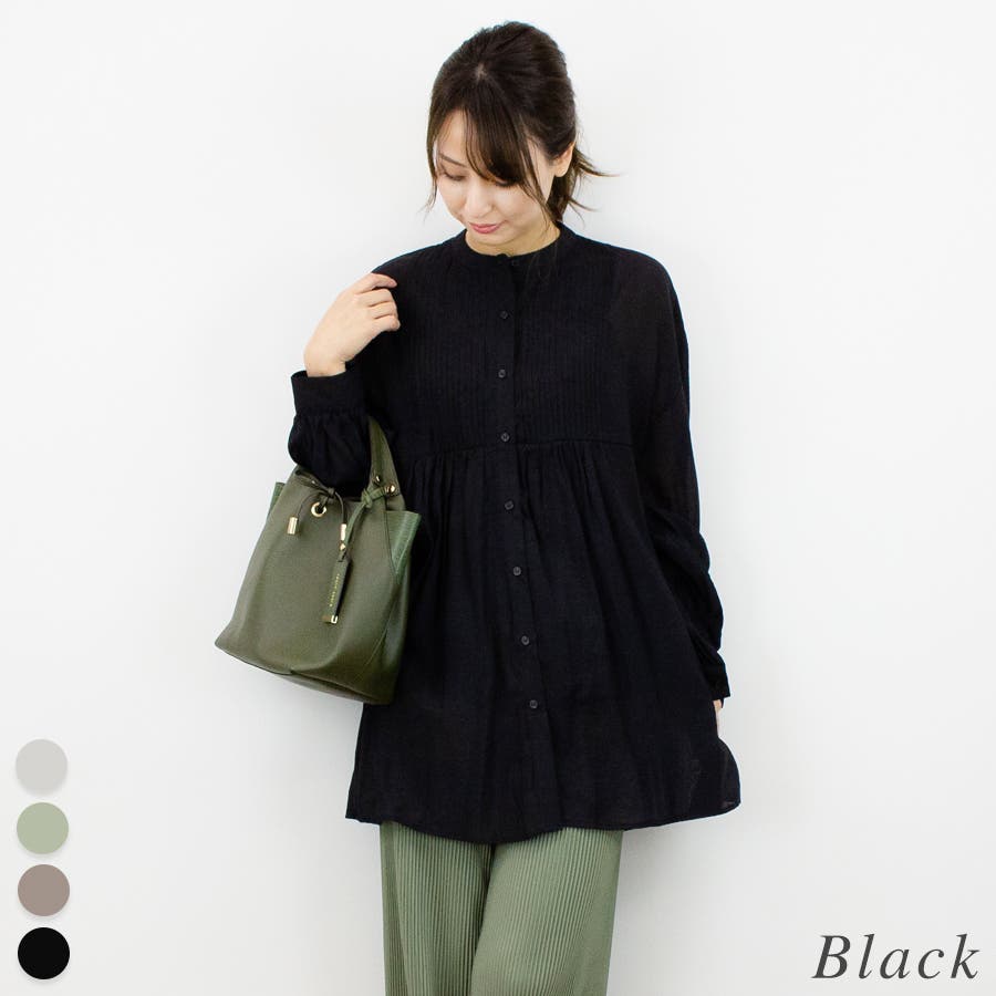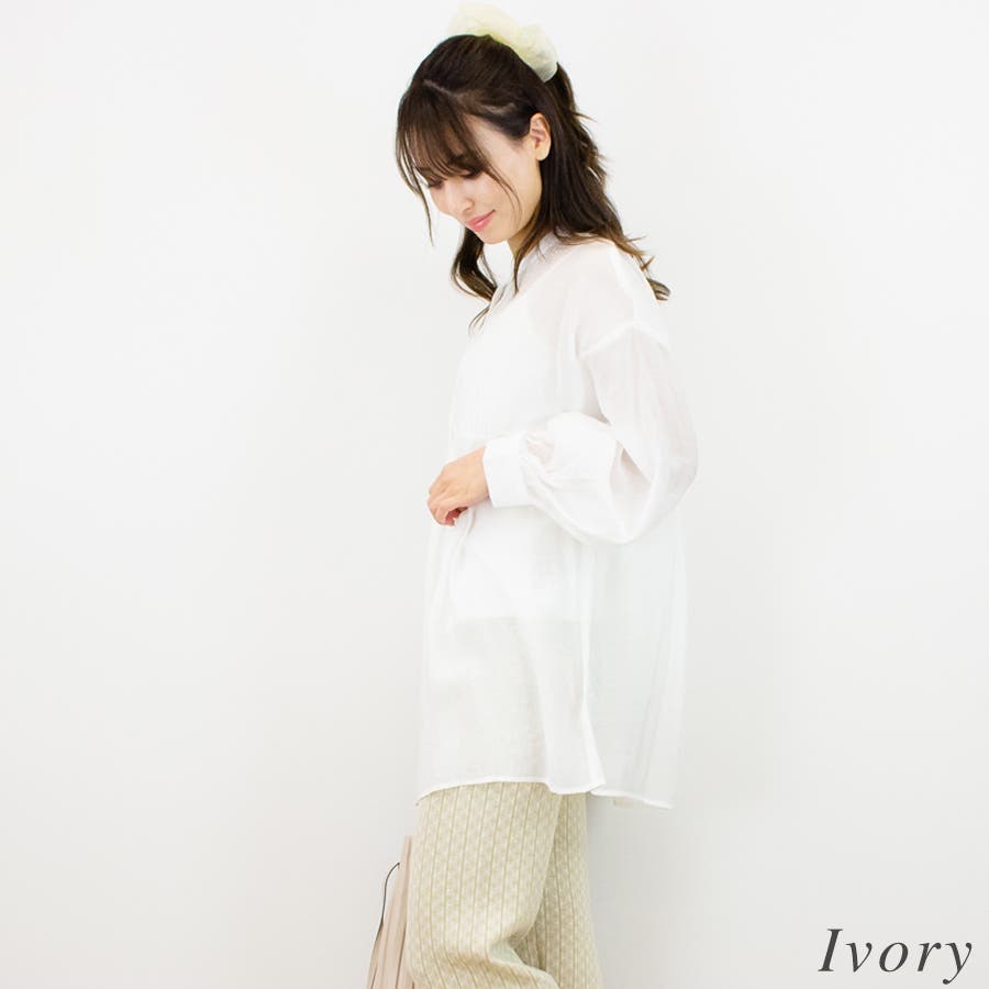 通学/通勤/シアー/ピンタック/バンドカラー/ブラウス/シャツ/