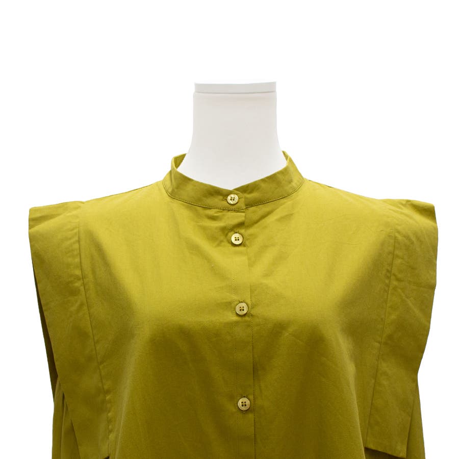 スクエアスリーブがおしゃれなハリ感のあるシャツ。