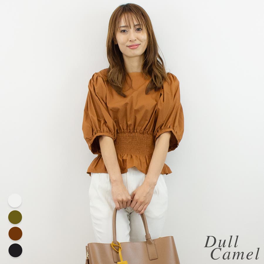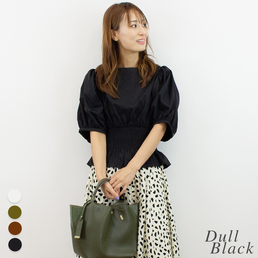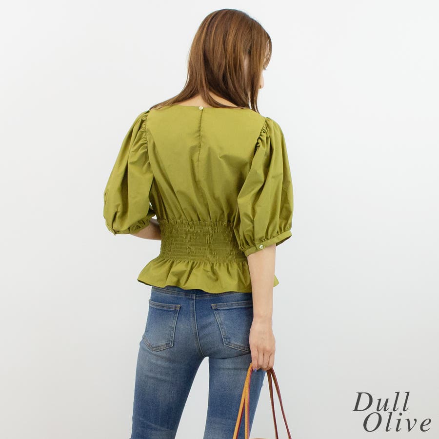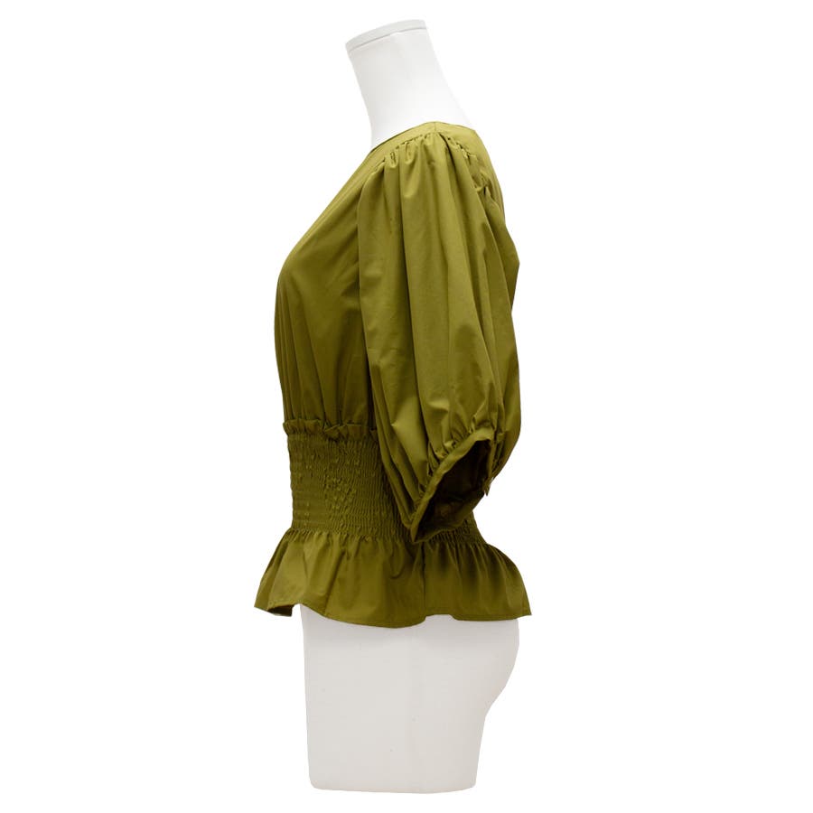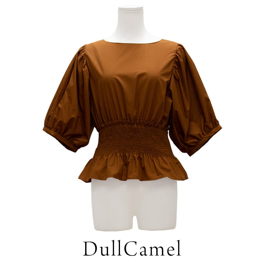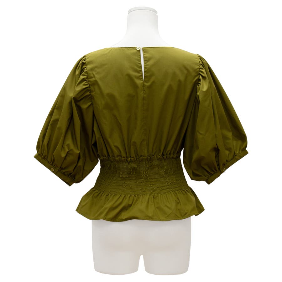 シャーリングペプラムブラウス