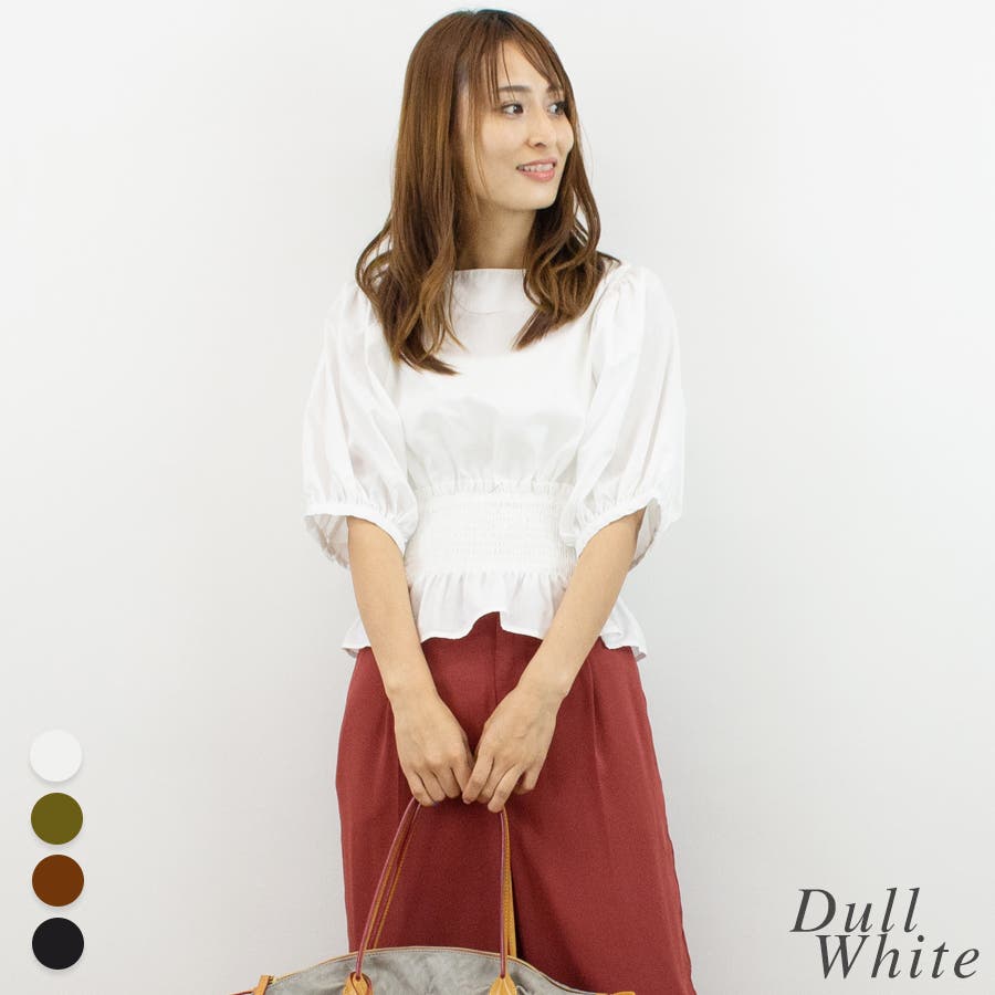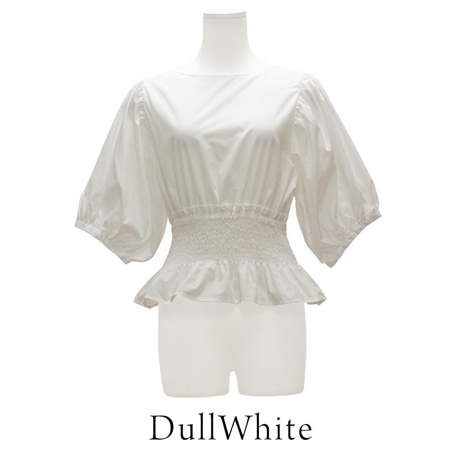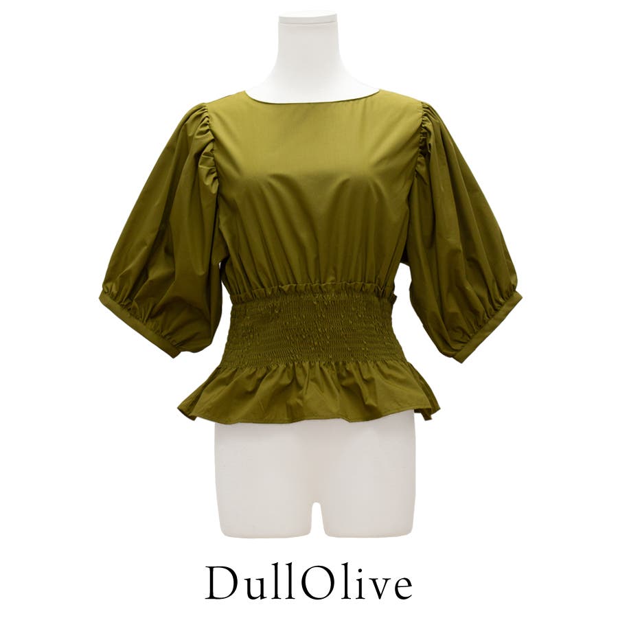 高めのウエストに入ったシャーリングでスタイルアップなペプラムブラウス。