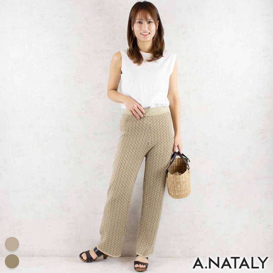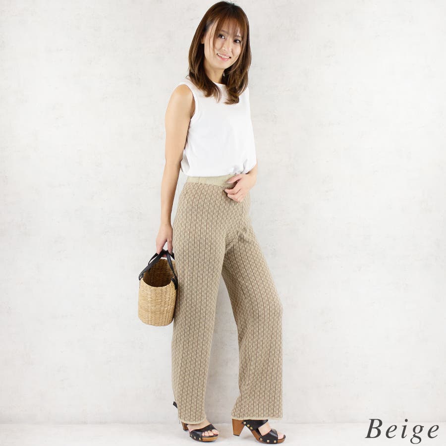 ジャガード柄のニットパンツはストレートタイプで♪