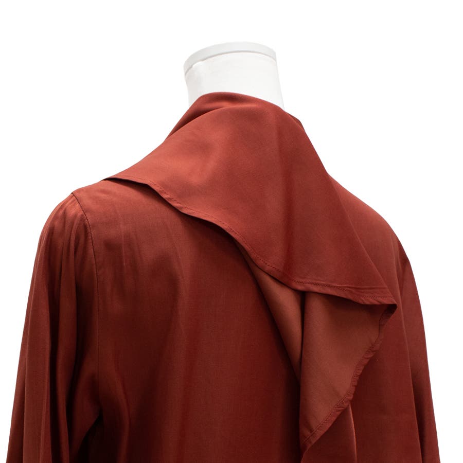 写真ではわからなかったのですが、少し光沢のある生地です。ケープがおしゃれでスカートでもパンツでも合わせやすいです。生地は透け感もないので春秋に着たら丁度良さそうです。