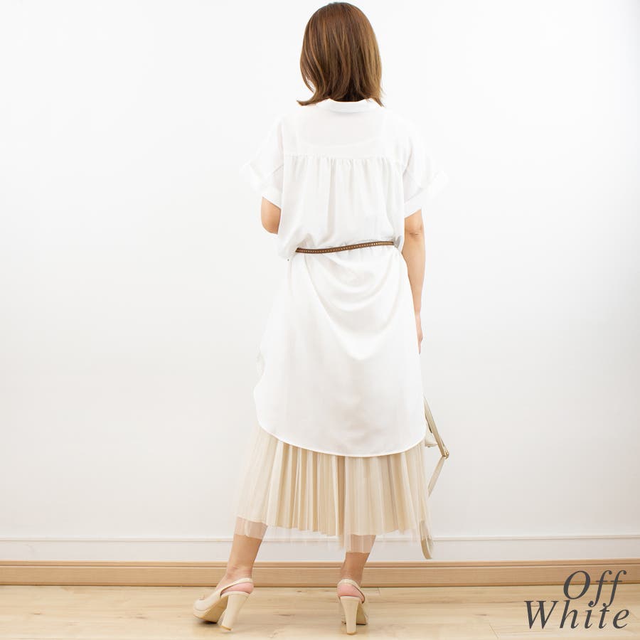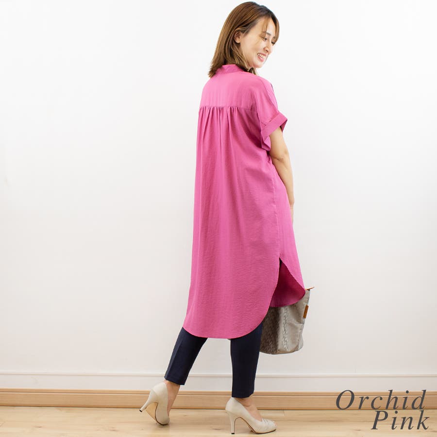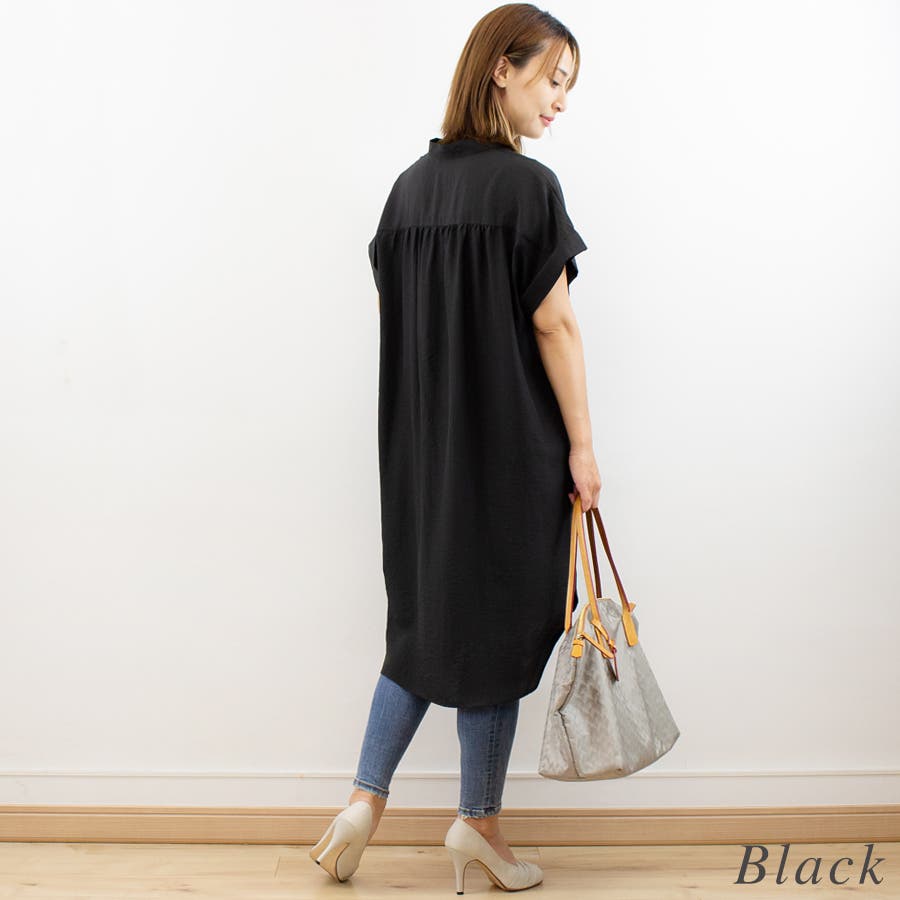お尻まですっぽり隠れる長め丈のスキッパーシャツ。