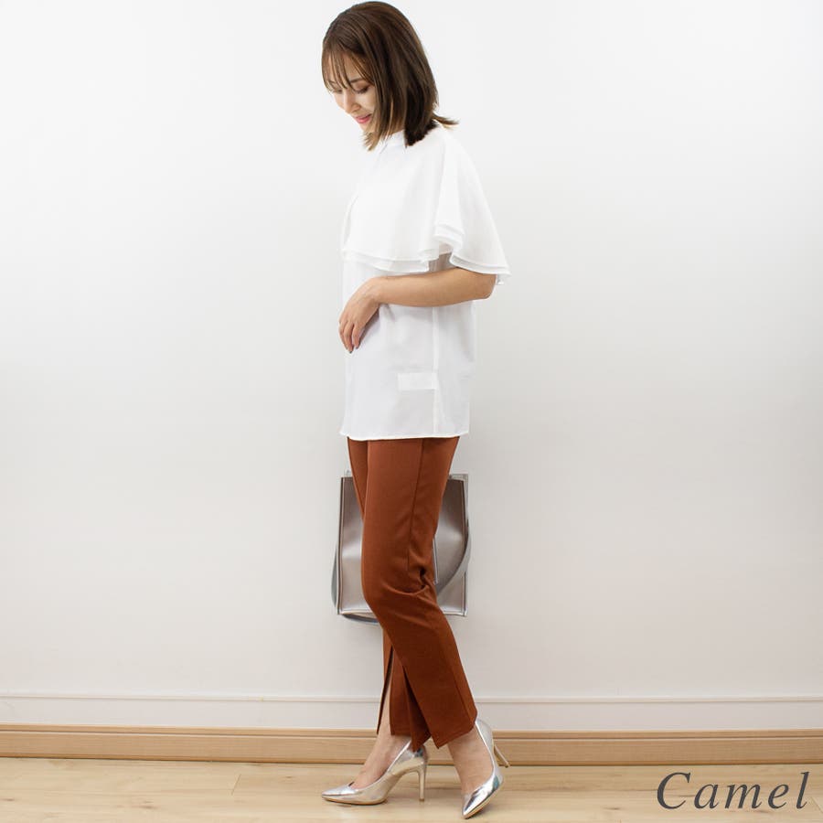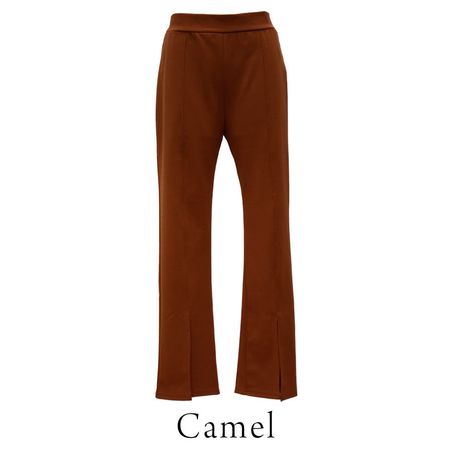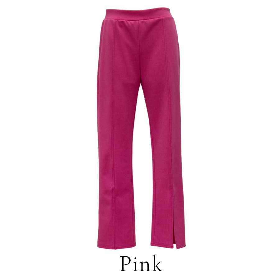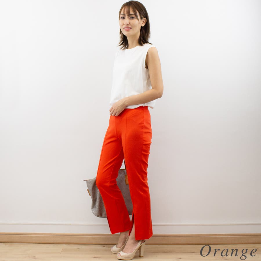 ポンチ素材でストレスフリーな履き心地のフロントスリットパンツ。