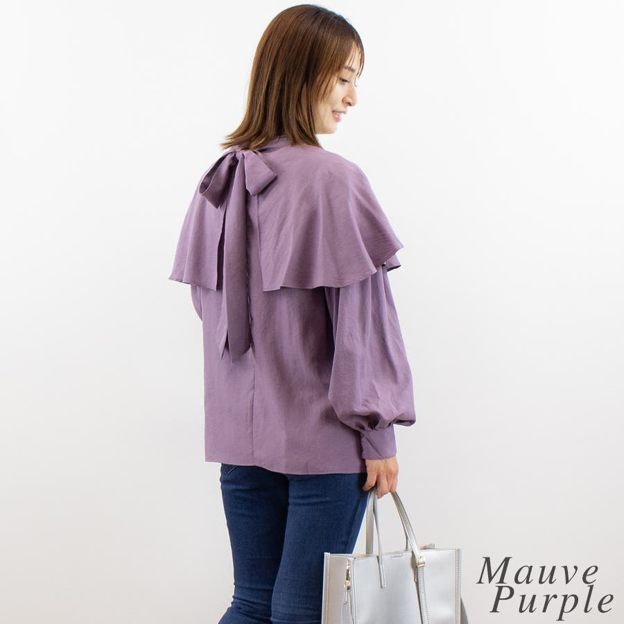 バックリボンとケープカラーで大人可愛いブラウス。