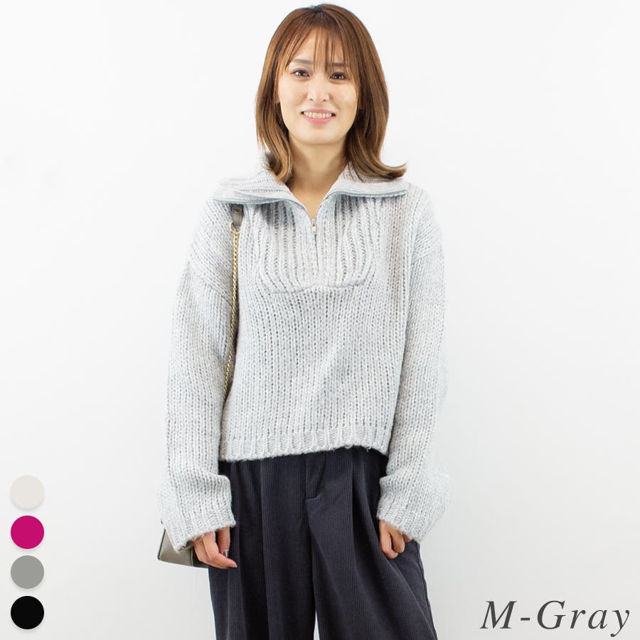 ボトム/通学/通勤/ざっくり/ジップ/起毛糸/クロップド/ジップアップ/